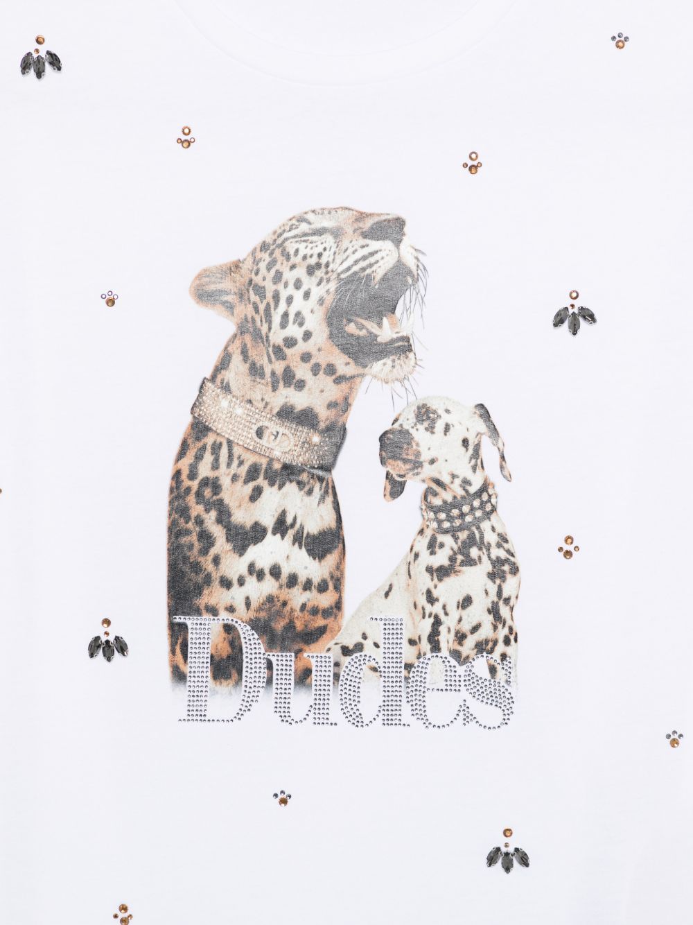 Realizzata in cotone, maniche corte, girocollo, stampa davanti con decorazione in cristalli, 100% cotone