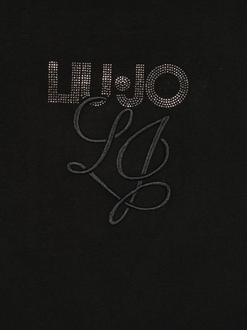 T-shirt Liu Jo da donna nera con stampa logo frontale, perfetta per un look casual moderno.