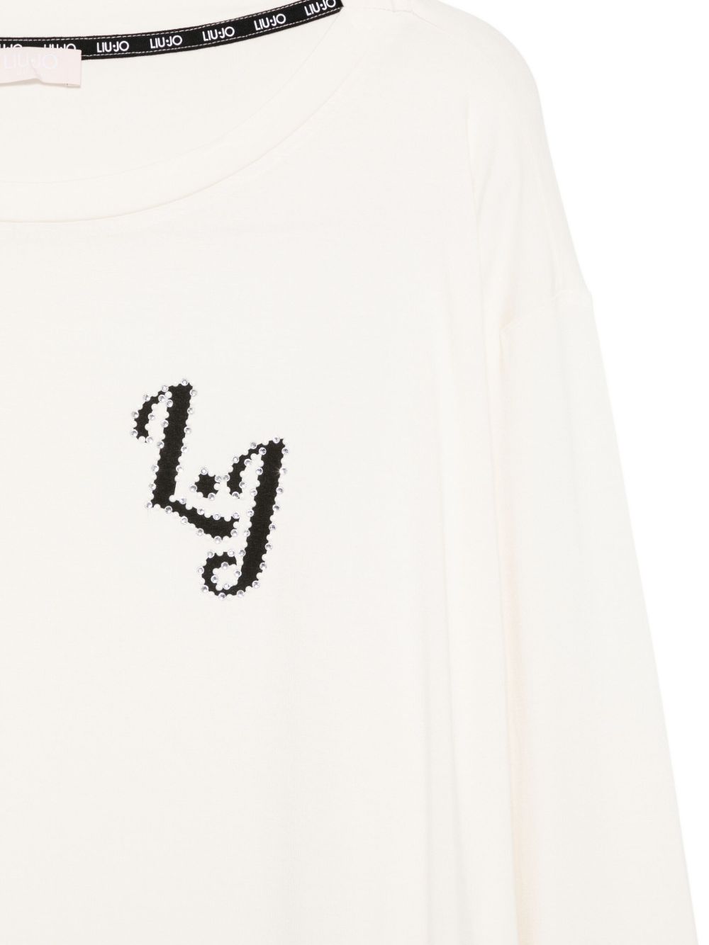 Realizzata in viscosa, scollo a barca, stampa logo davanti con strass, maniche lunghe, 95% viscosa, 5% elastan