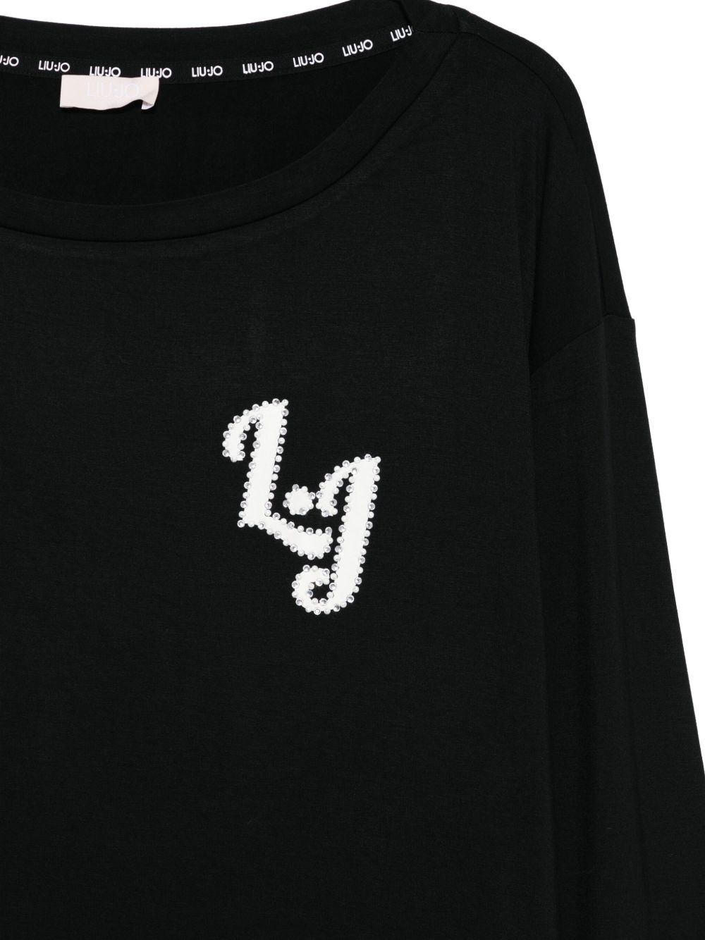 Realizzata in viscosa, scollo a barca, stampa logo davanti con strass, maniche lunghe, 95% viscosa, 5% elastan