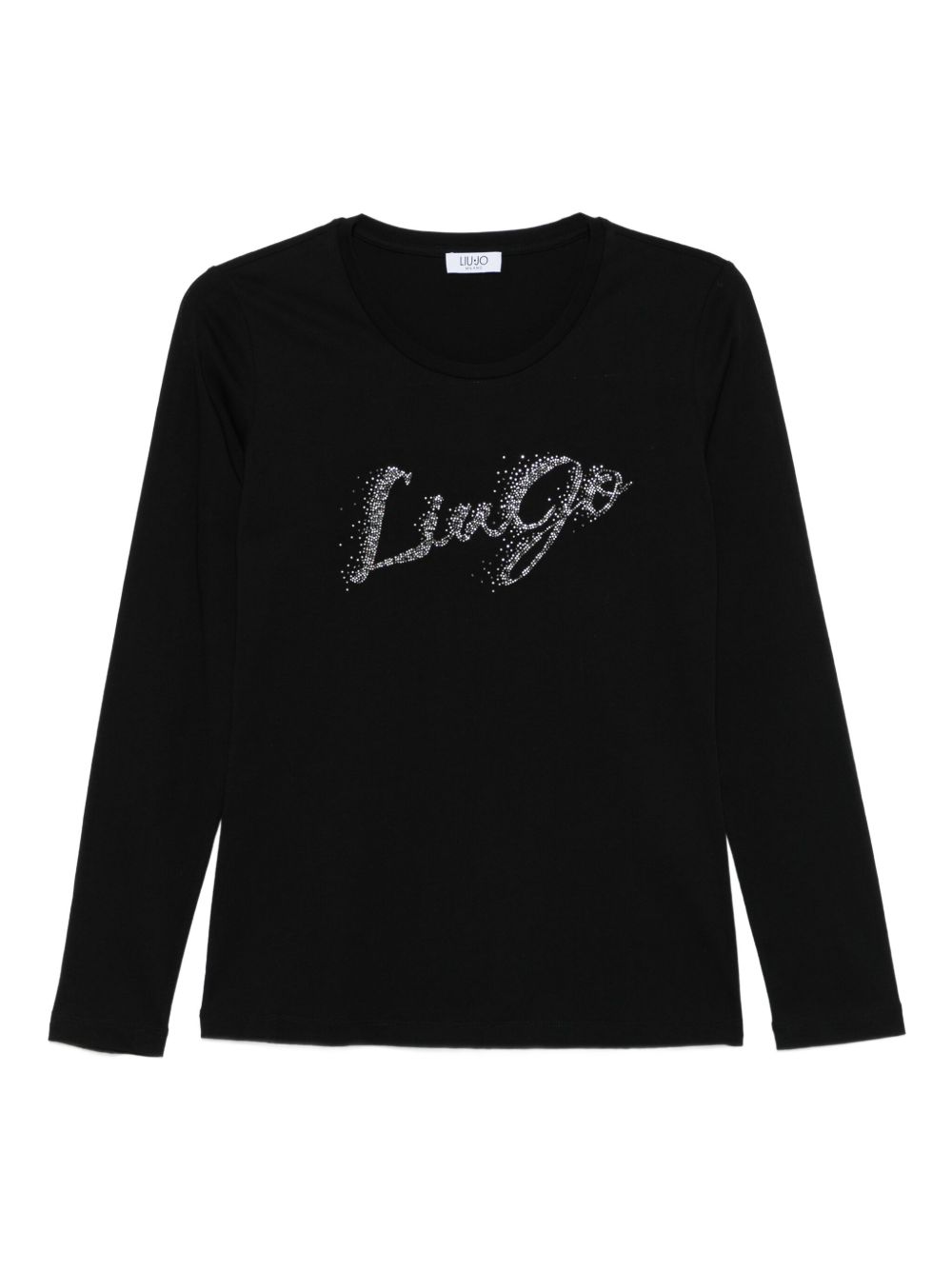 Realizzata in jersey di cotone, collo rotondo, stampa davanti con decorazione, maniche lunghe, 100% cotone