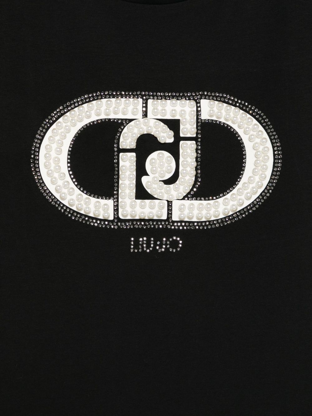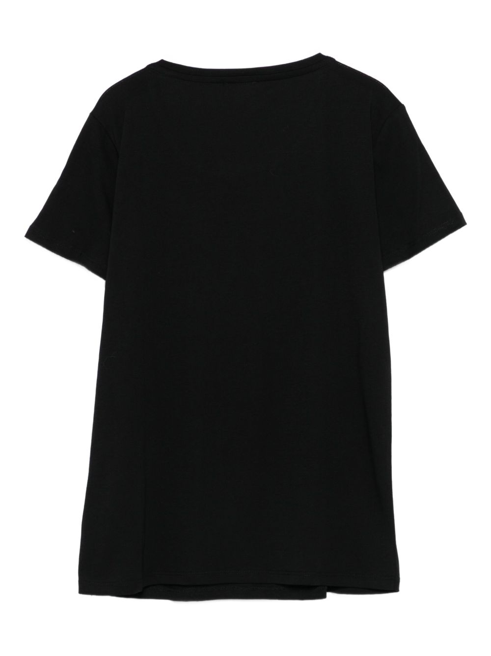 Realizzata in jersey di cotone, collo rotondo, stampa logo davanti con strass, maniche corte, 100% cotone