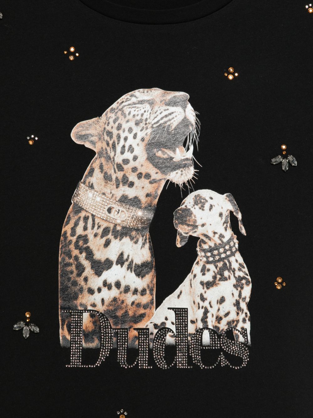 Realizzata in cotone, maniche corte, girocollo, stampa davanti con decorazione in cristalli, 100% cotone