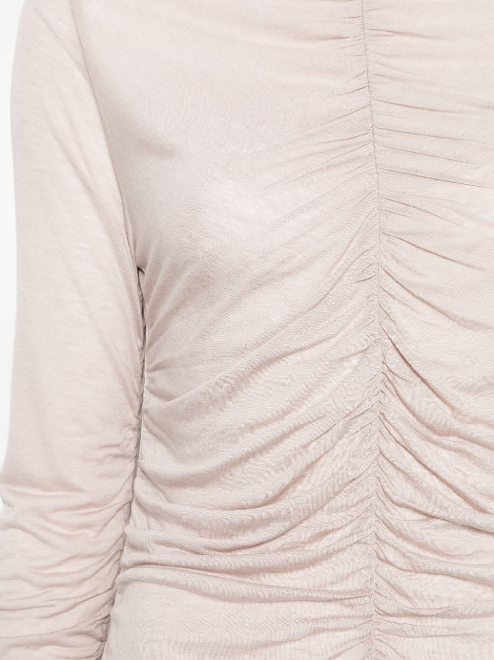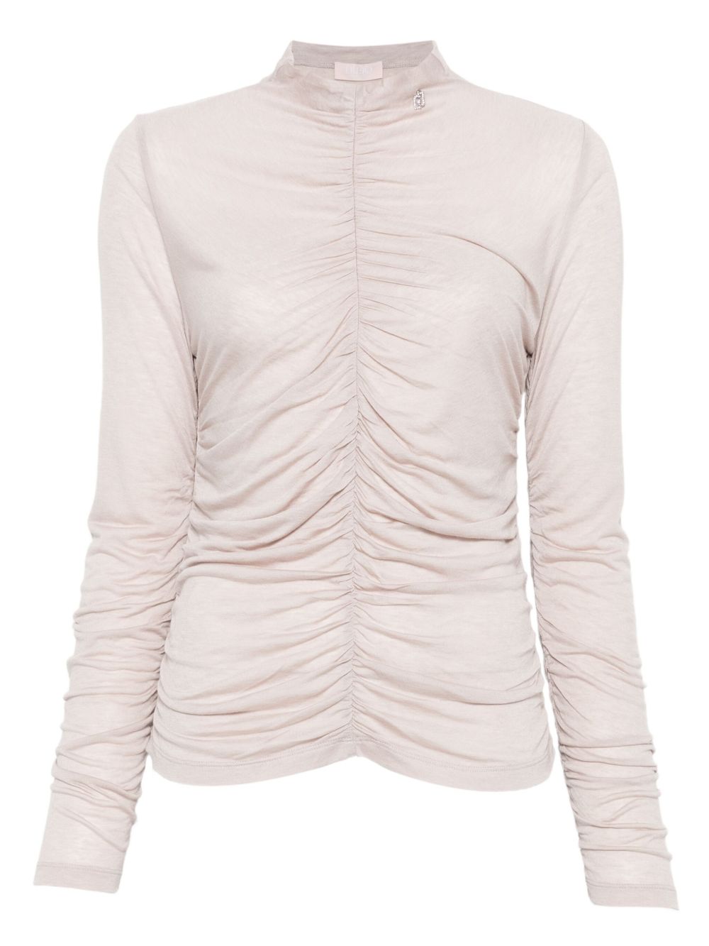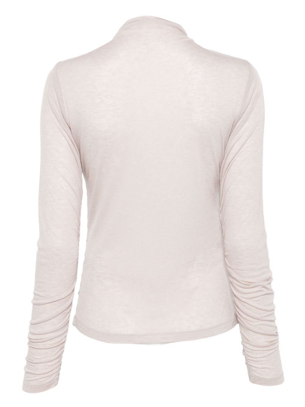 Realizzato in misto lana, design arricciato, maniche lunghe, applicazione logo in metallo sul collo, 70% modal, 30% lana