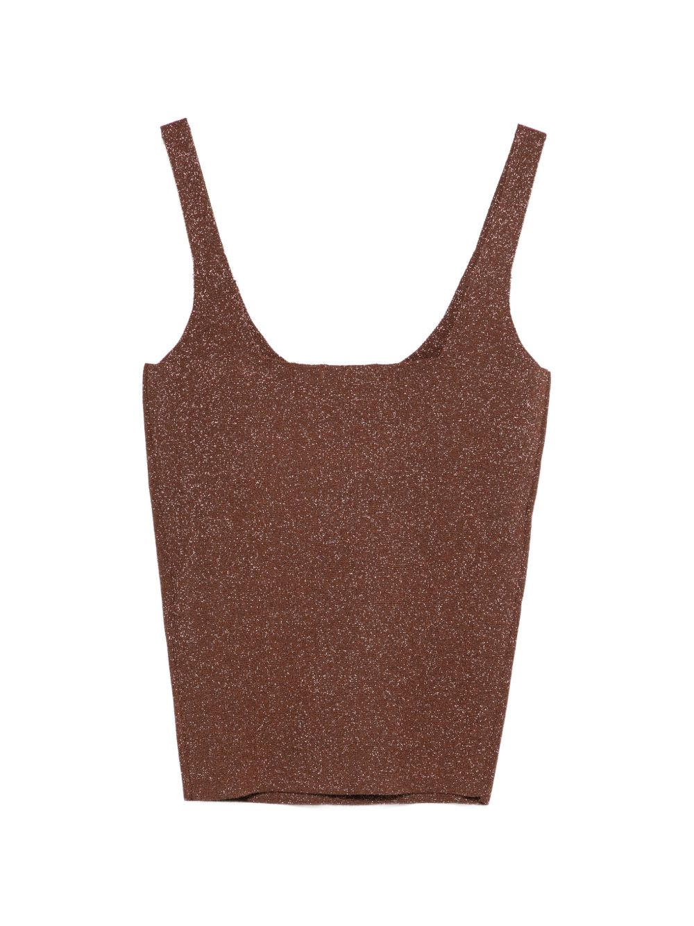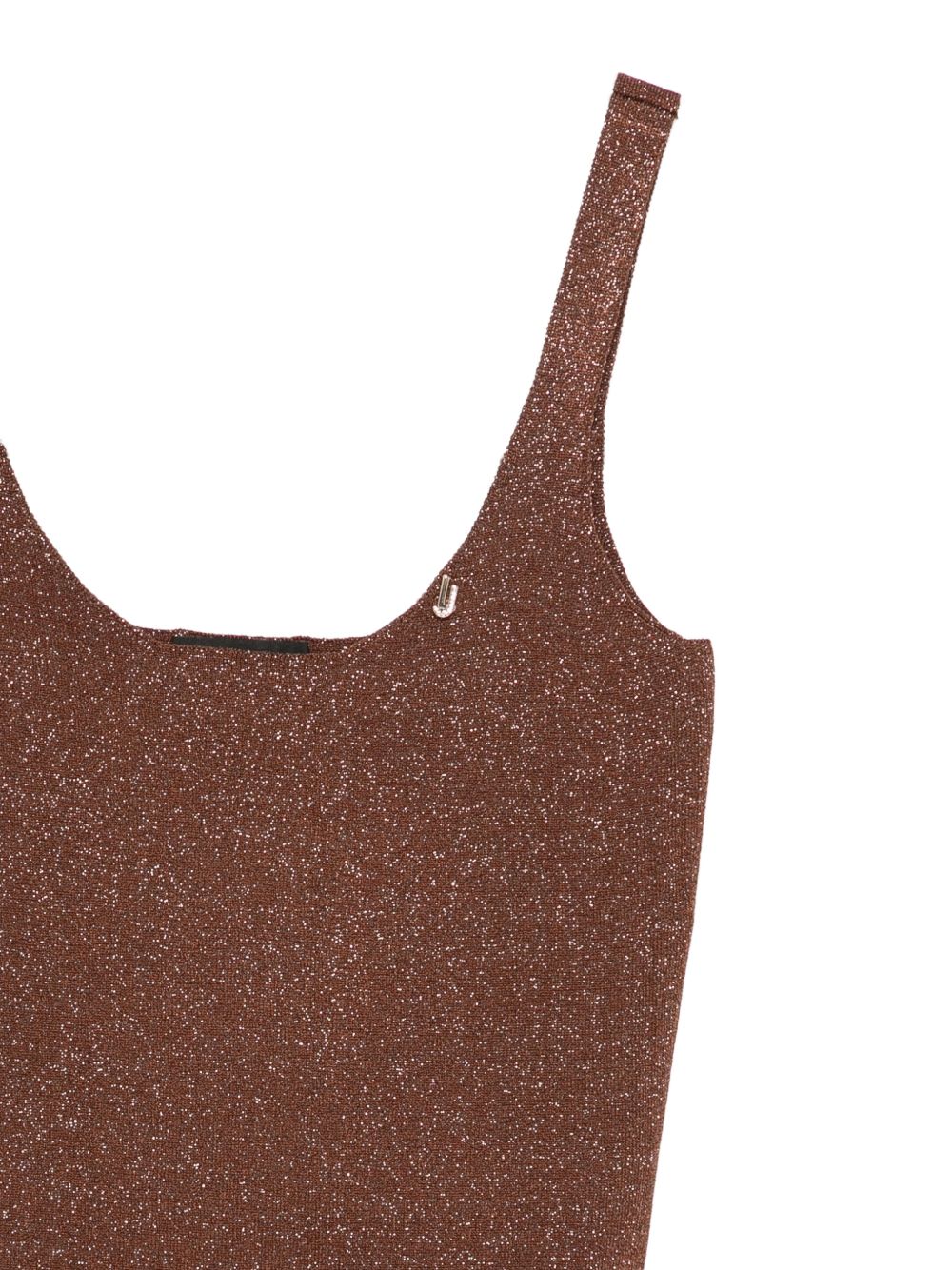 Top Liu Jo da donna in lurex color marrone con spalline sottili, perfetto per un look elegante e contemporaneo.