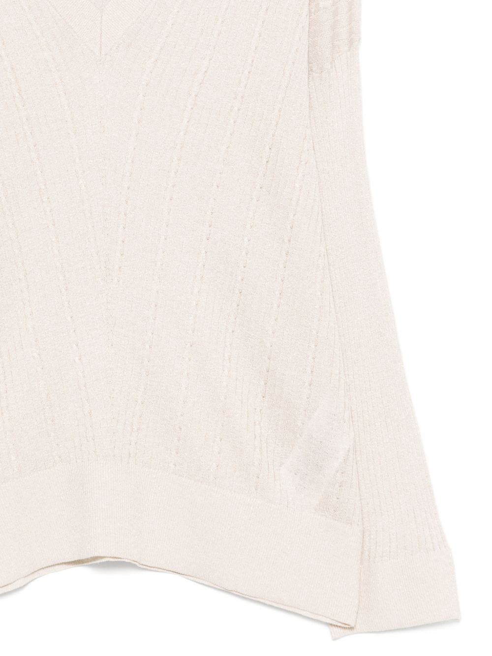 Top Liu Jo da donna in costina lurex color platino con dettaglio sciarpa integrata, perfetto per look eleganti e raffinati.
