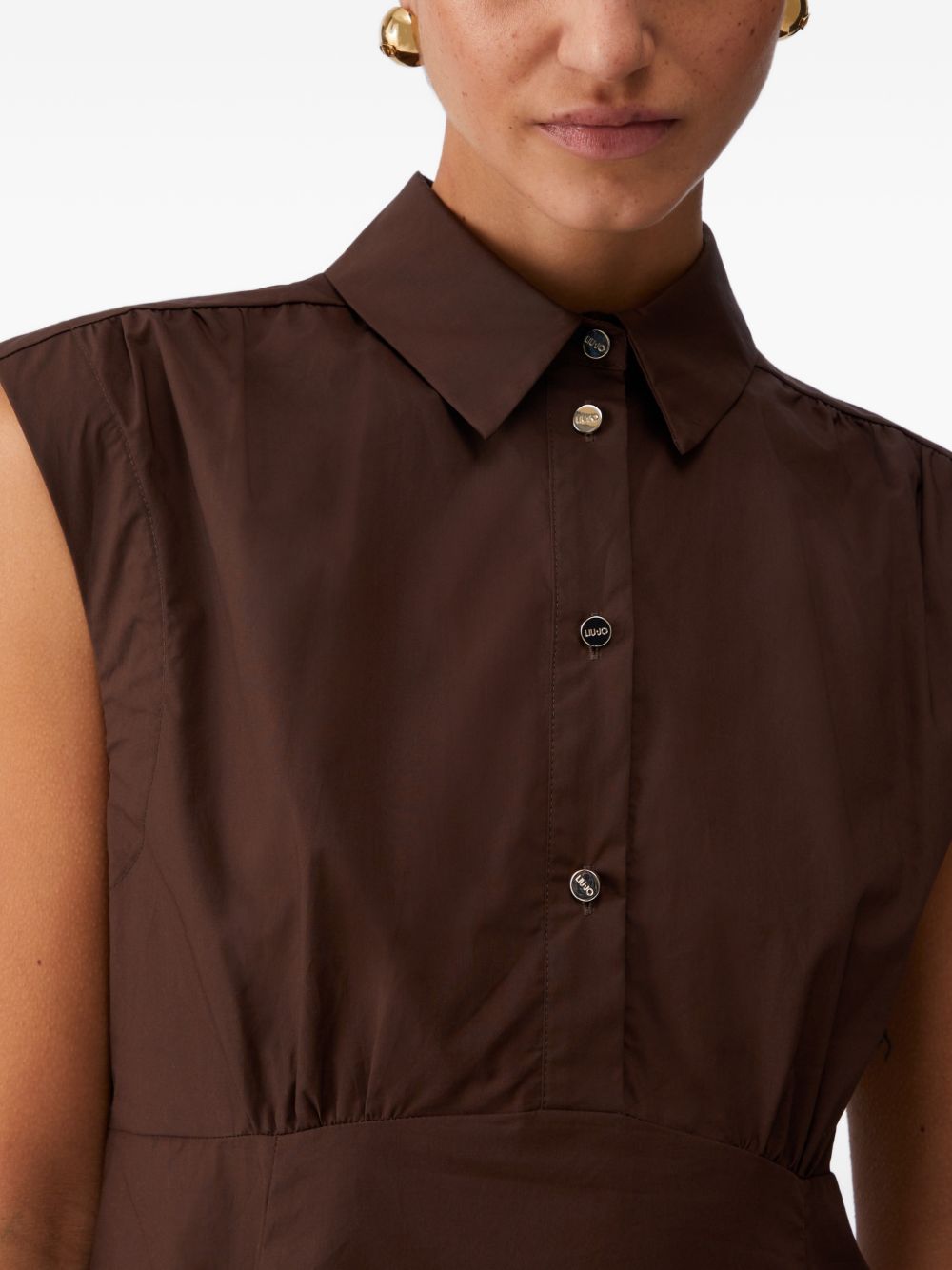 Top donna Liu Jo marrone popeline smanicato