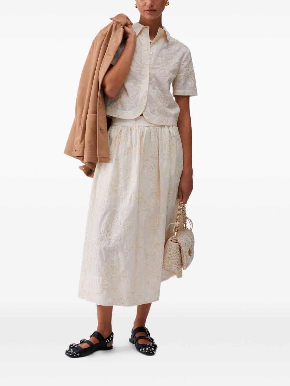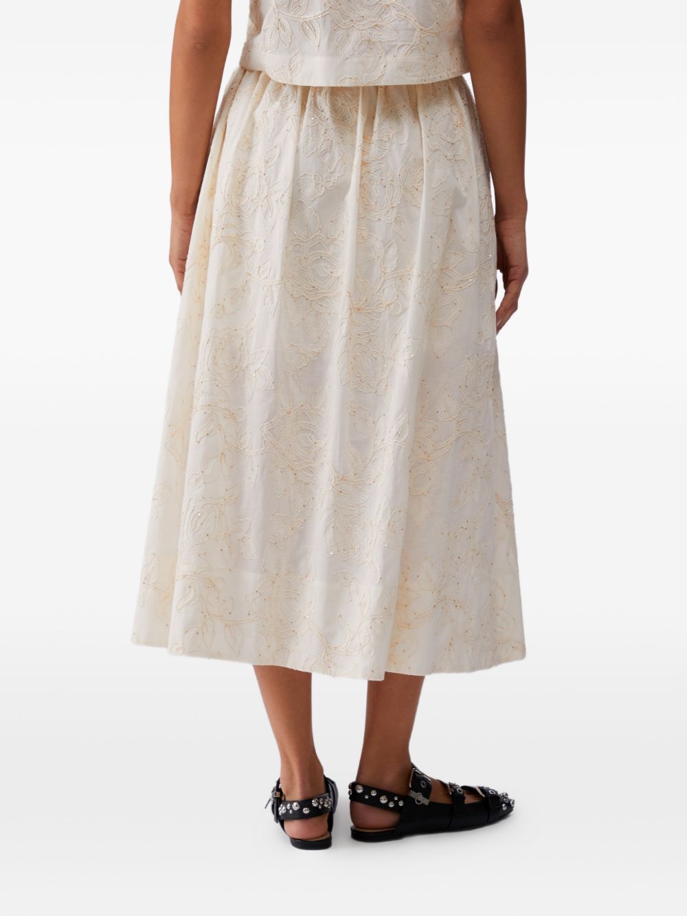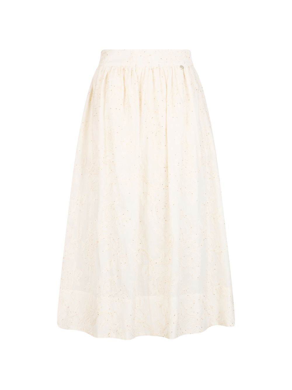 Top Liu Jo da donna panna con ricamo e paillettes, perfetto per aggiungere un tocco luminoso al look.