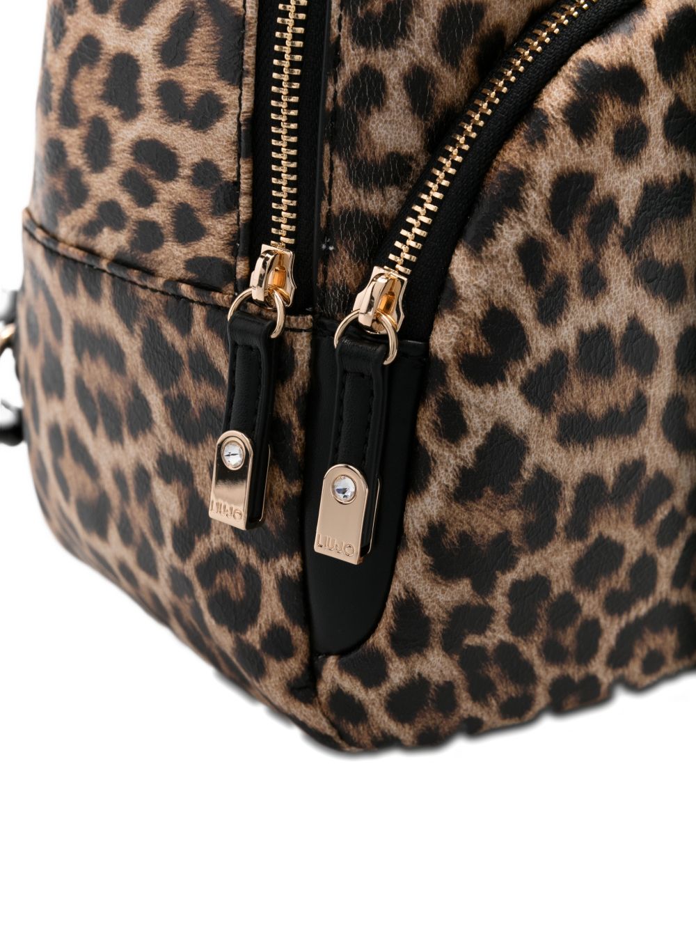 Realizzato in poliestere, chiusura davanti e superiore con zip, spallacci regolabili, tasca interna con cerniera, fodera interna con stampa logo all-over, stampa esterna effetto bottolato, logo in metallo color oro davanti, manico superiore, 26 x 13 x 30 cm.