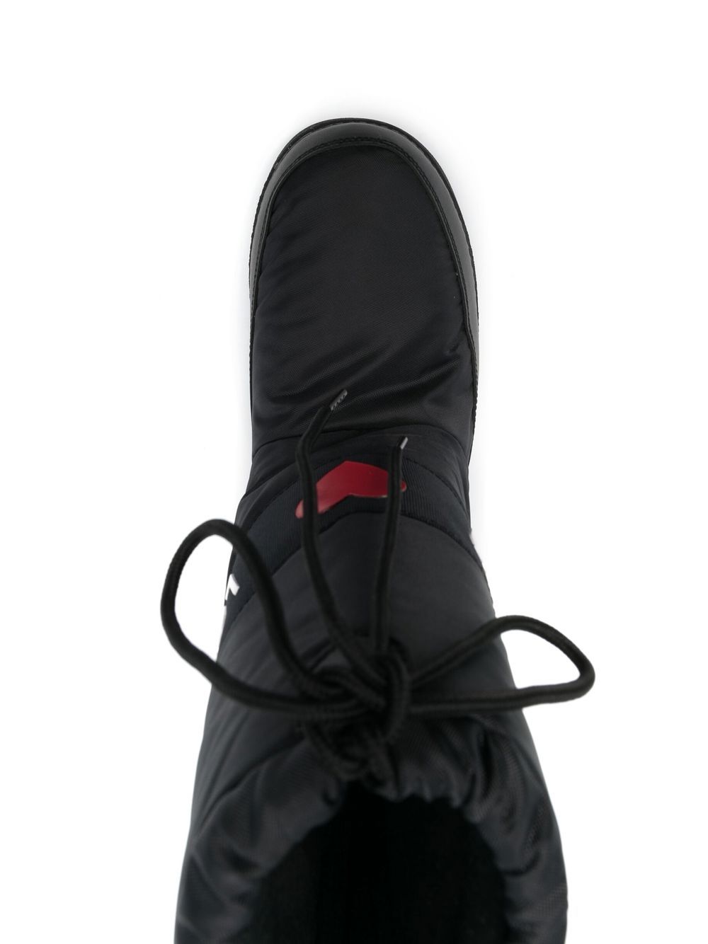 stampa logo laterale, punta rotonda, chiusura con coulisse, altezza a mezzo polpaccio, suola in gomma