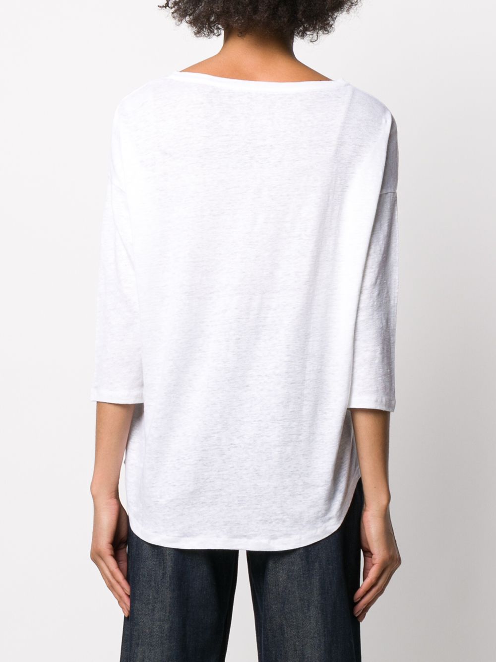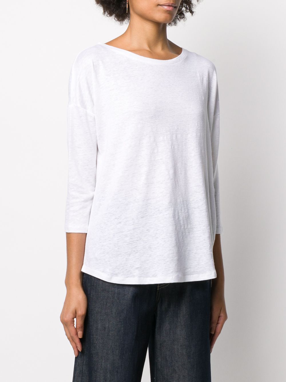 T-shirt Majestic Filatures da donna bianca con scollo a barca e manica tre quarti, dal design essenziale e raffinato, ideale per outfit casual e contemporanei.