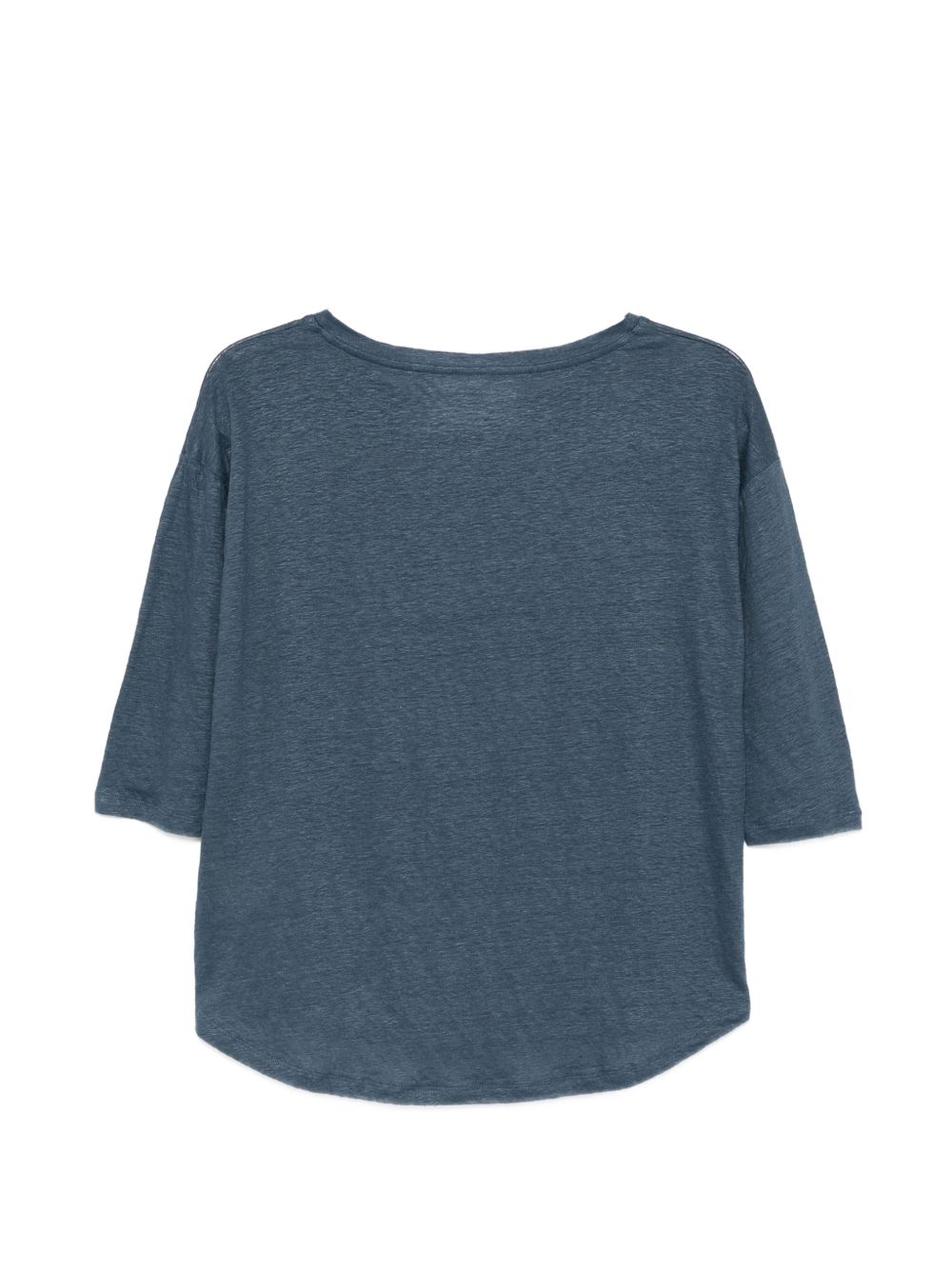 T-shirt Majestic Filatures da donna blu con scollo a barca e manica tre quarti, dal design essenziale e versatile.
