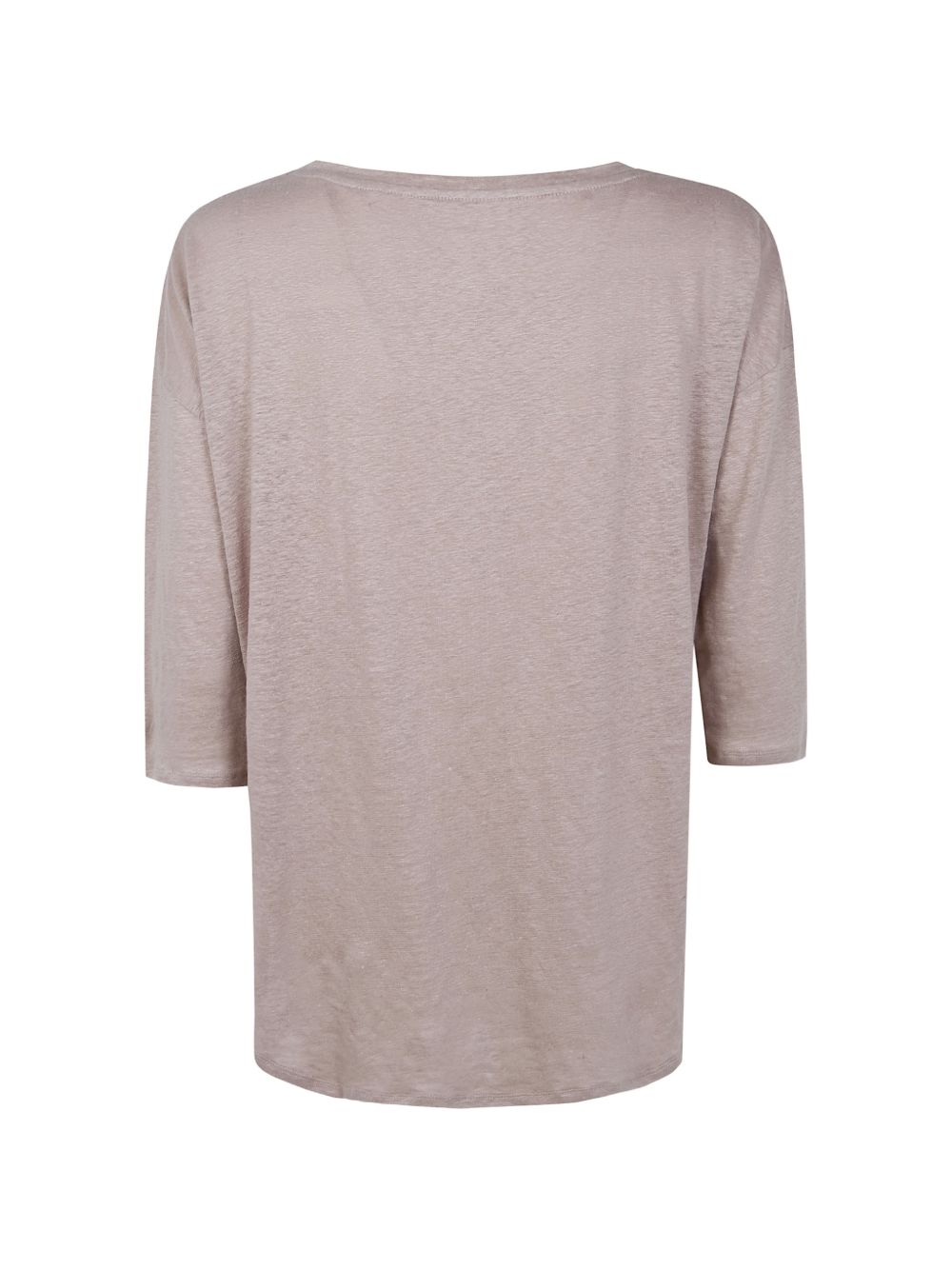 T-shirt Majestic Filatures da donna in tonalità desert con scollo a barca e manica tre quarti, ideale per outfit minimal e contemporanei.