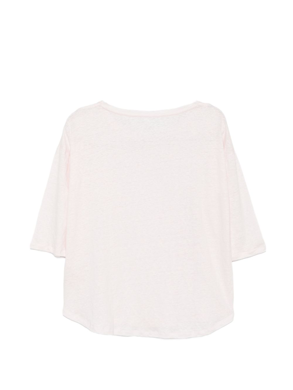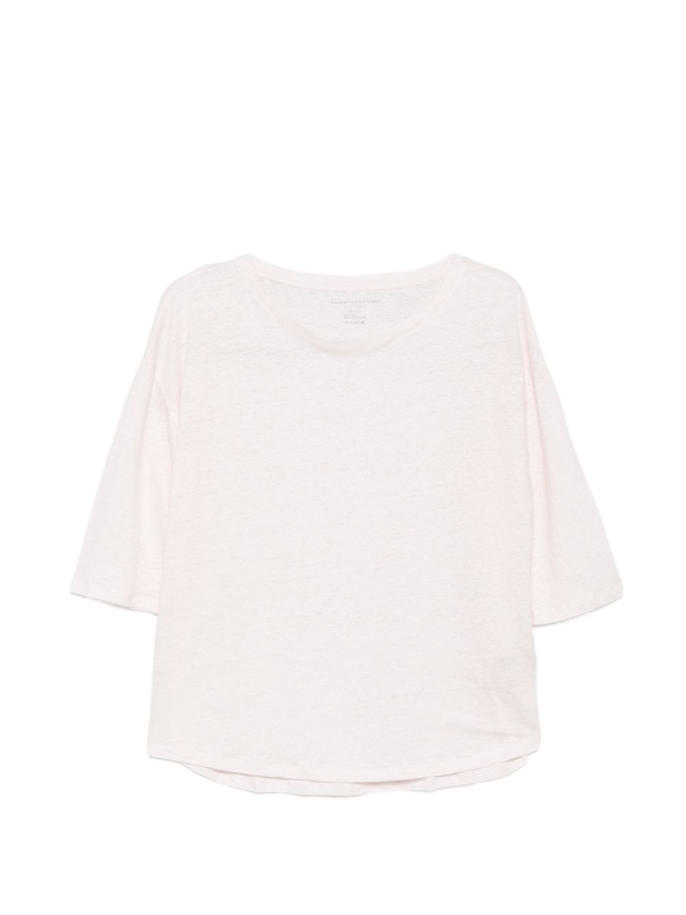 T-shirt Majestic Filatures da donna rosa con scollo a barca e manica tre quarti, perfetta per outfit femminili e contemporanei.