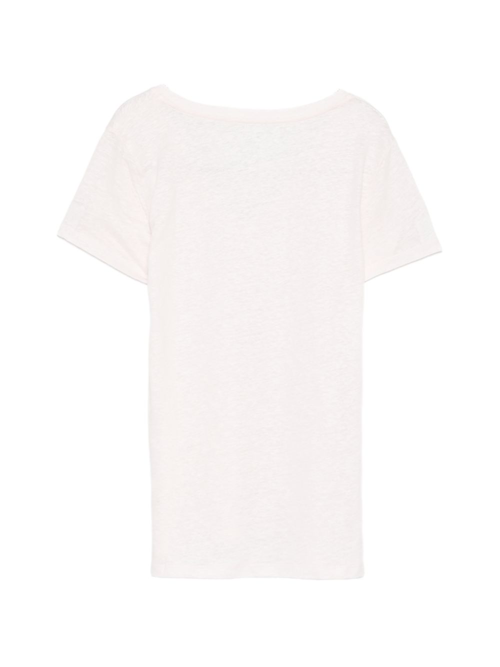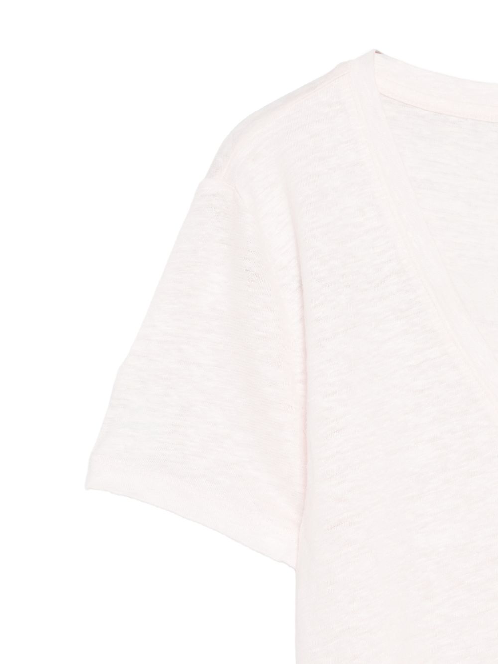 T-shirt Majestic Filatures da donna rosa con scollo a V, ideale per outfit femminili e contemporanei.