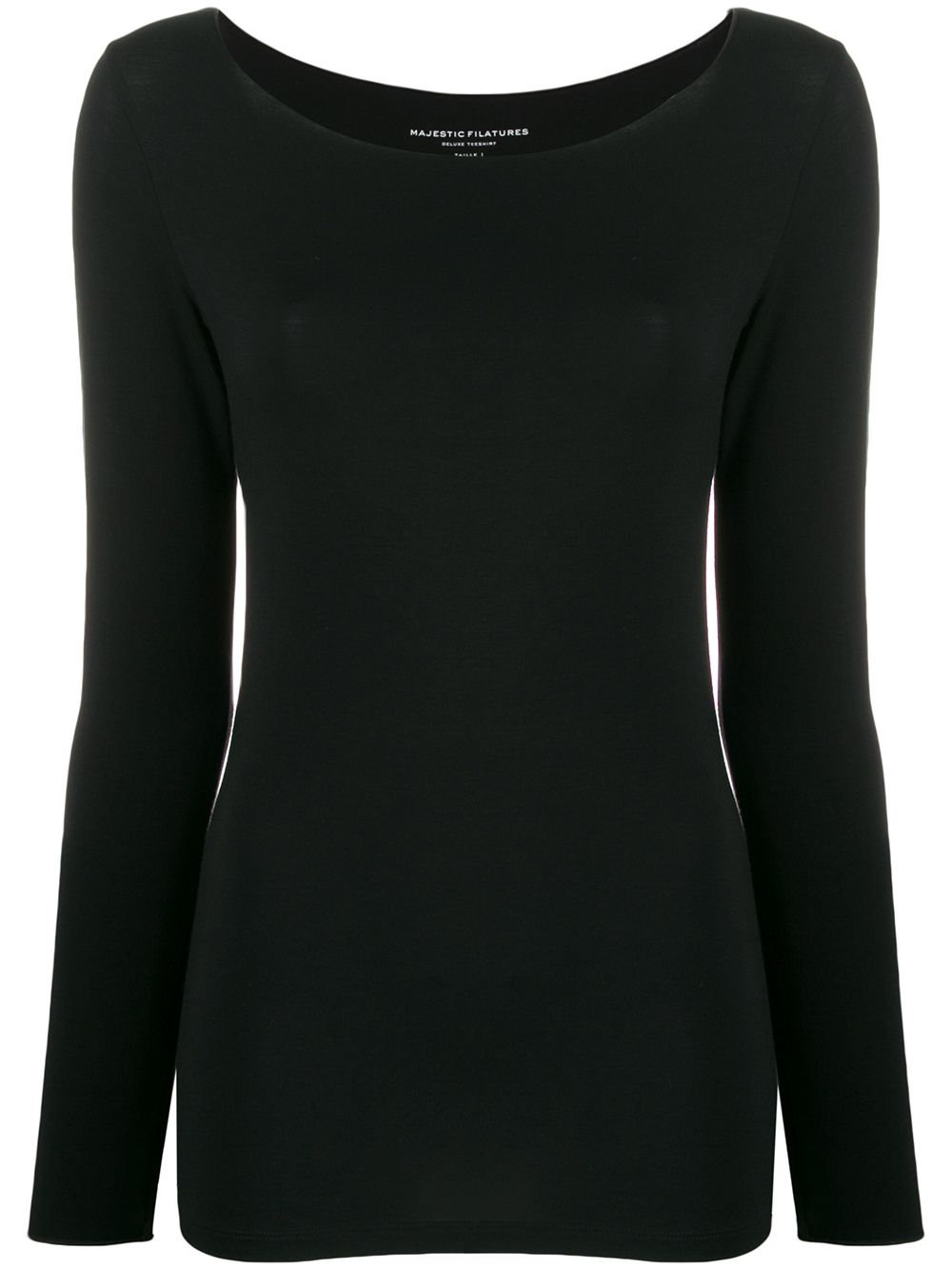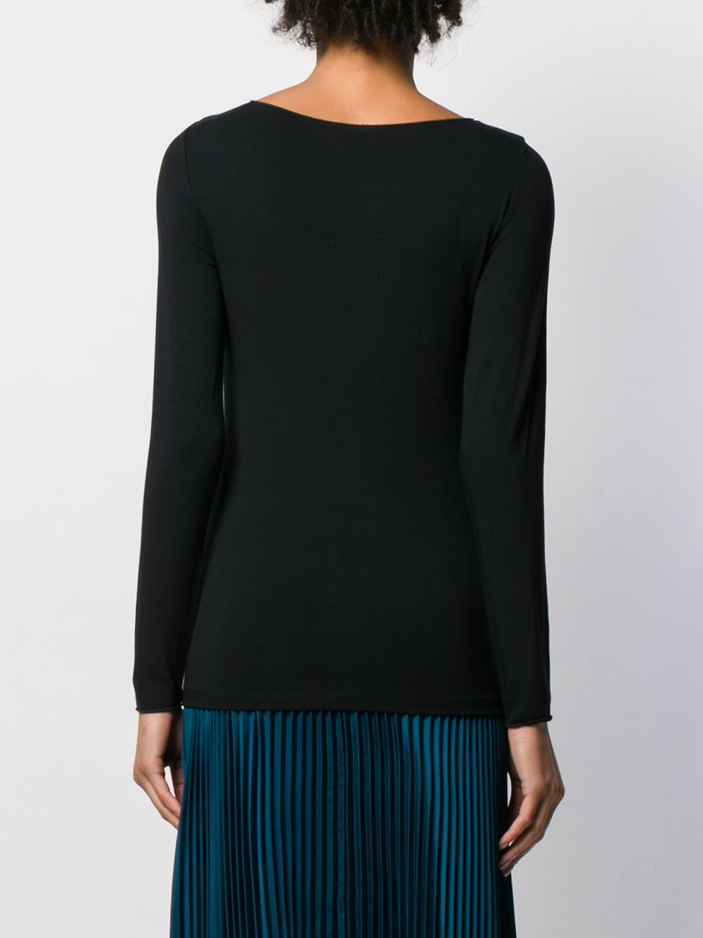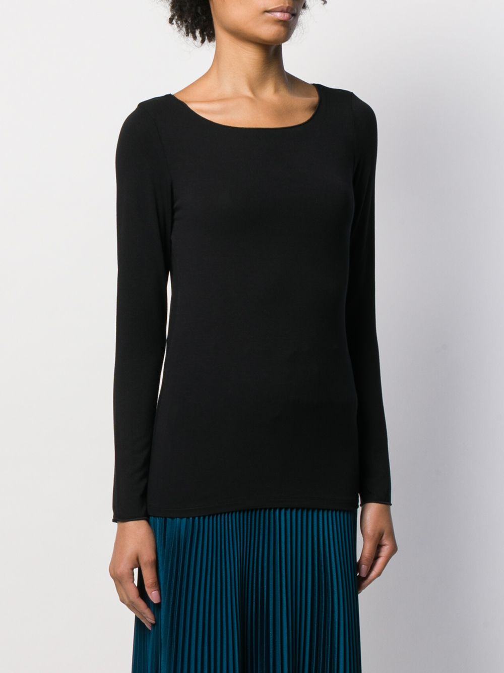 Realizzata in morbida viscosa, maniche lunghe, scollo a barchetta, vestibilità slim, 94% viscosa, 6% elastan
