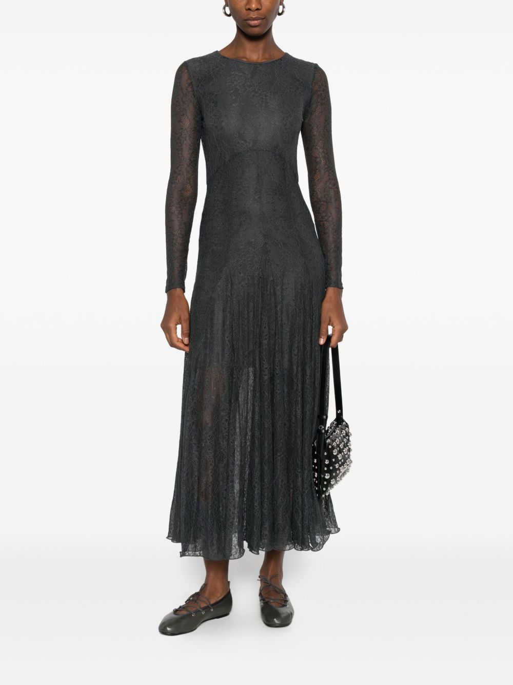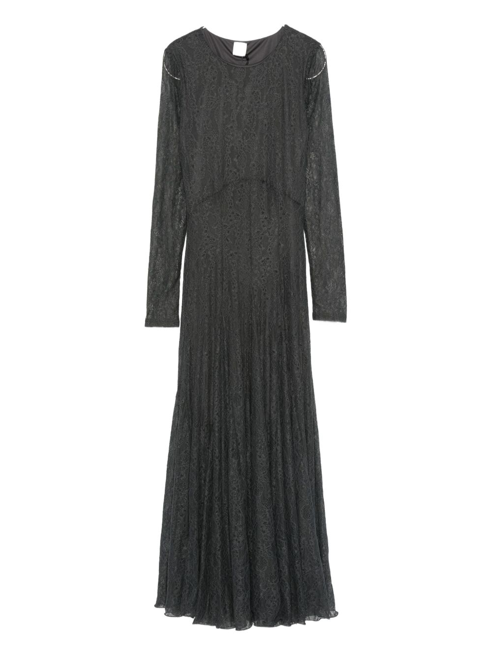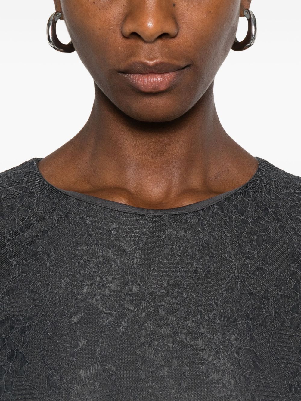 Realizzato con poliestere riciclato, design floreale, girocollo, manica trasparente, 81% poliestere, 19% elastan, costruzione a godet, fodera 100% poliestere