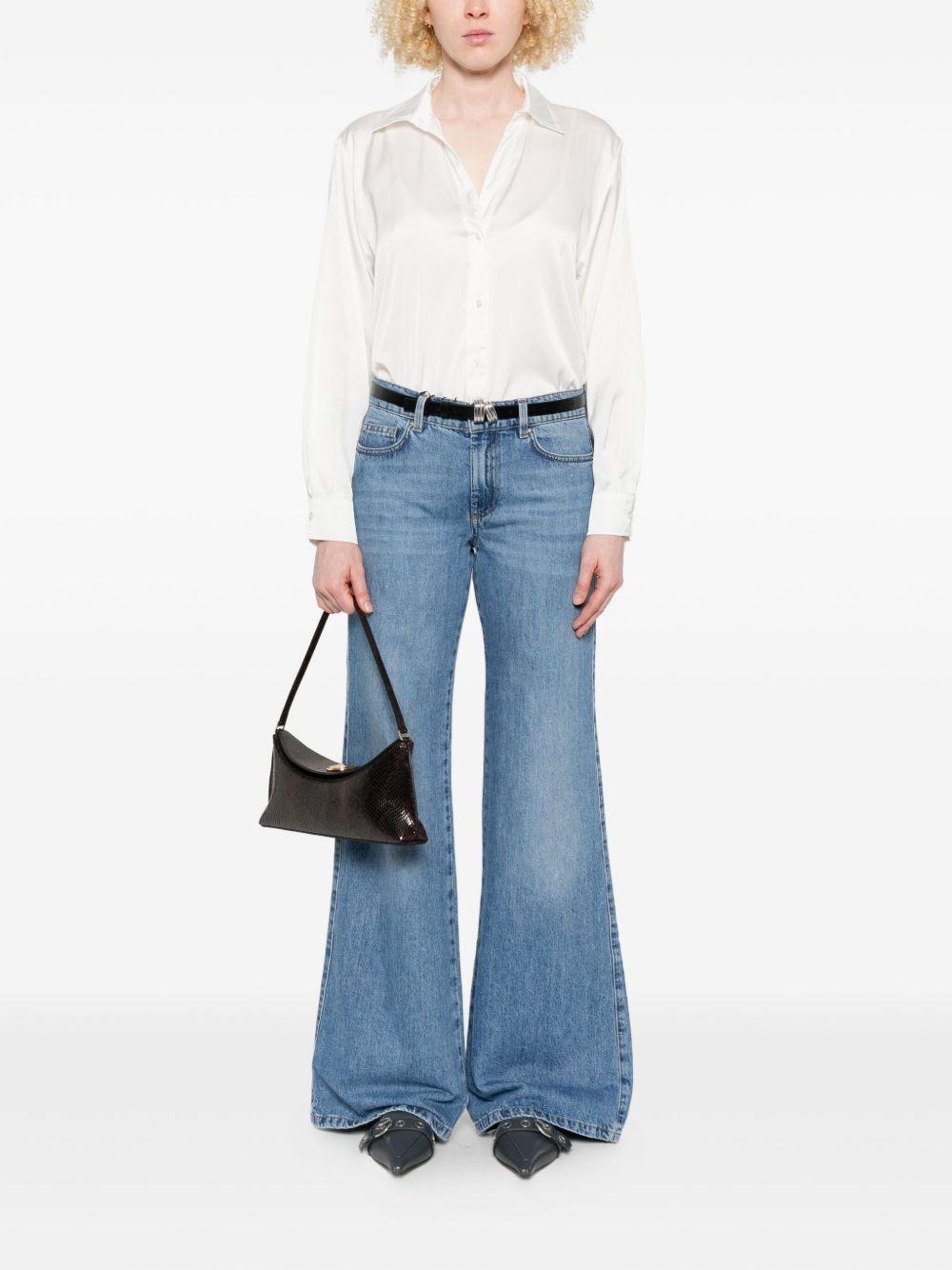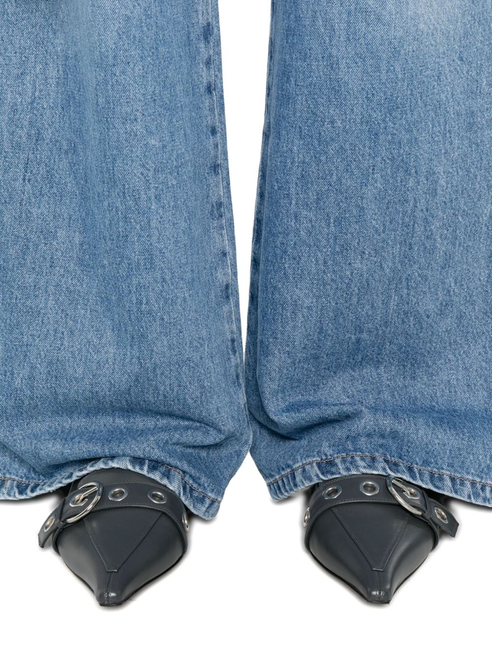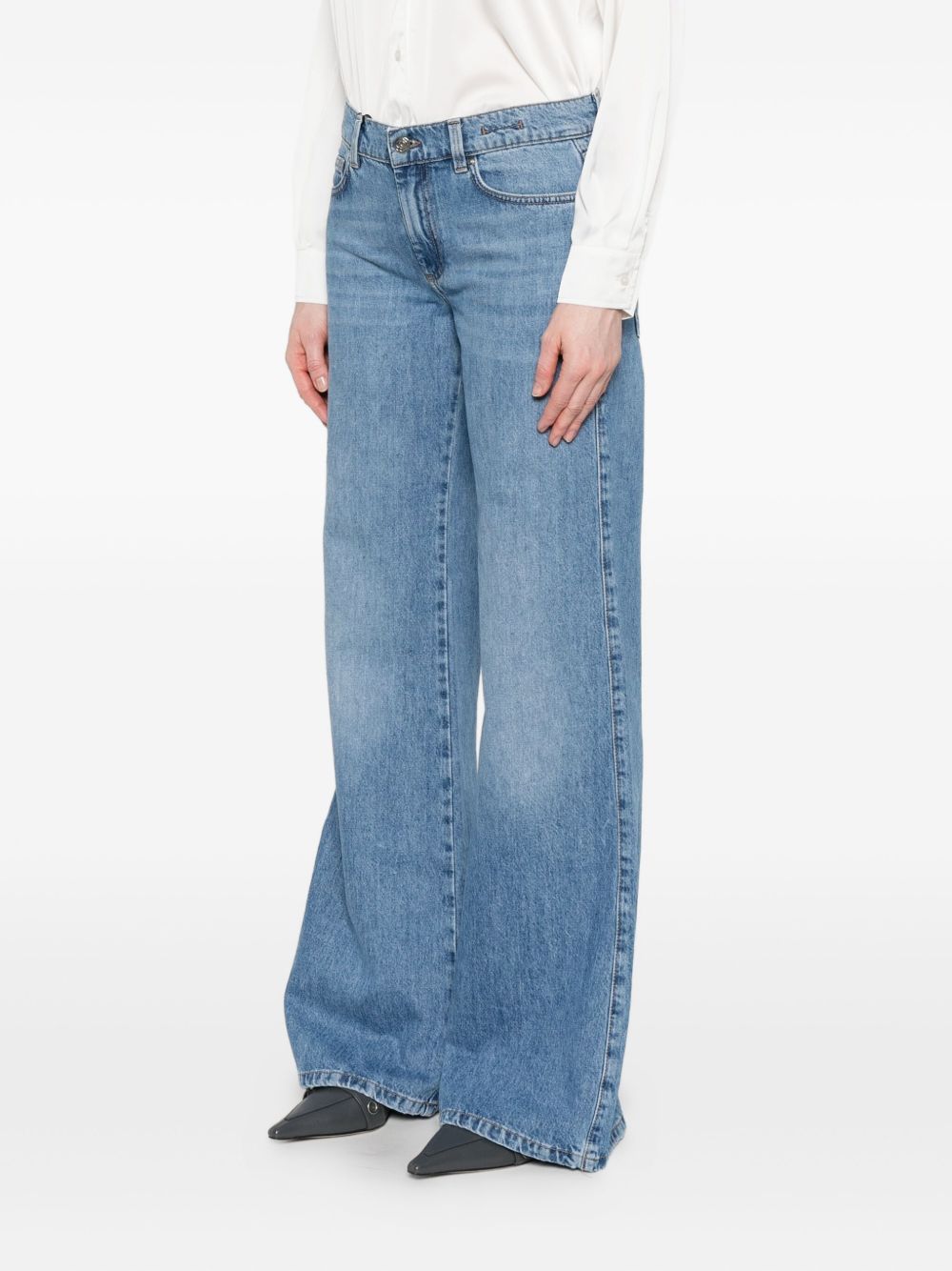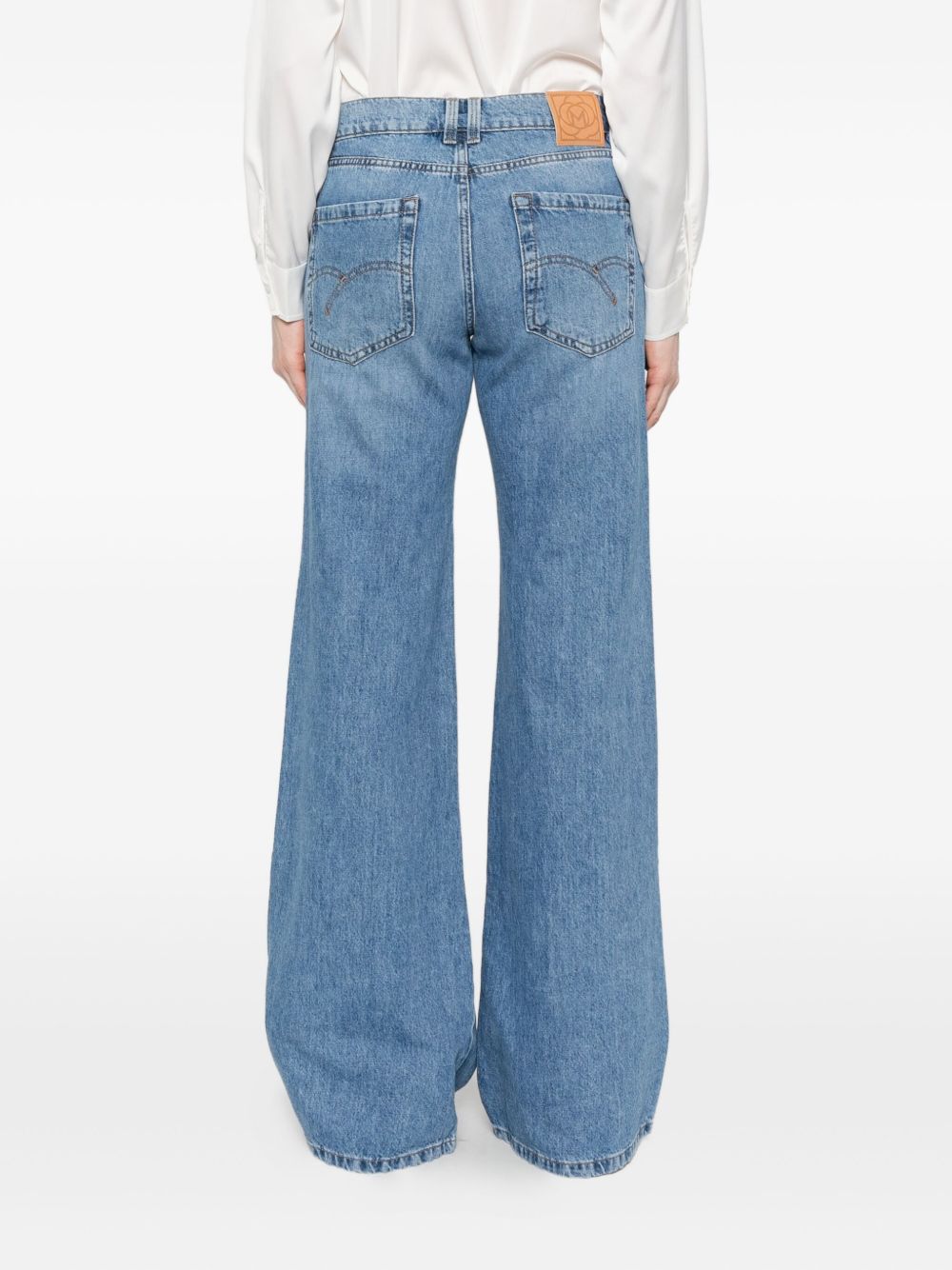 Realizzato in denim, design a cinque tasche, chiusura con zip e bottone, vita alta, 100% cotone