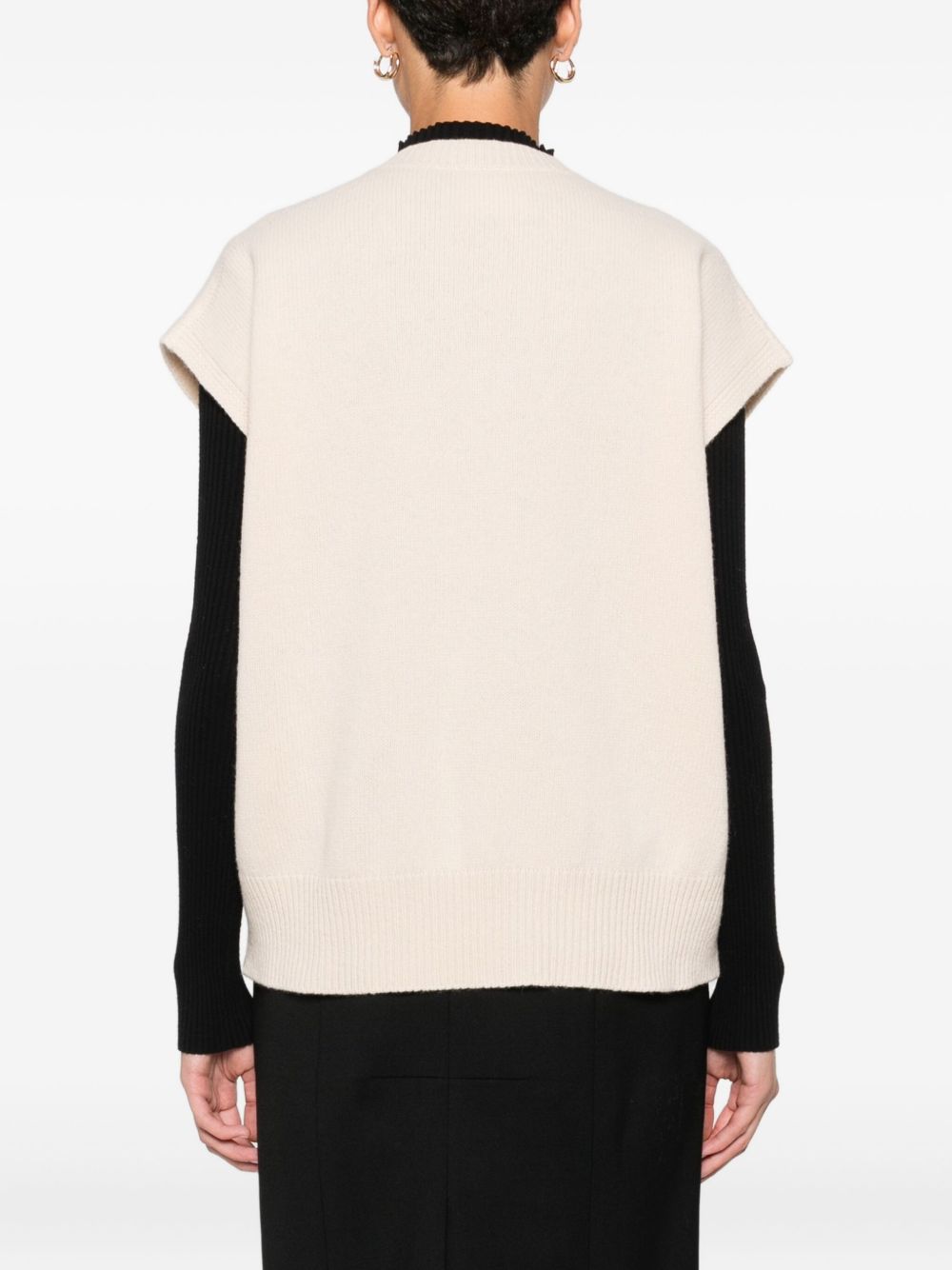 Realizzata in lana vergine, scollo a V, fondo e scollo a costine, vestibilità over, 100% lana vergine
