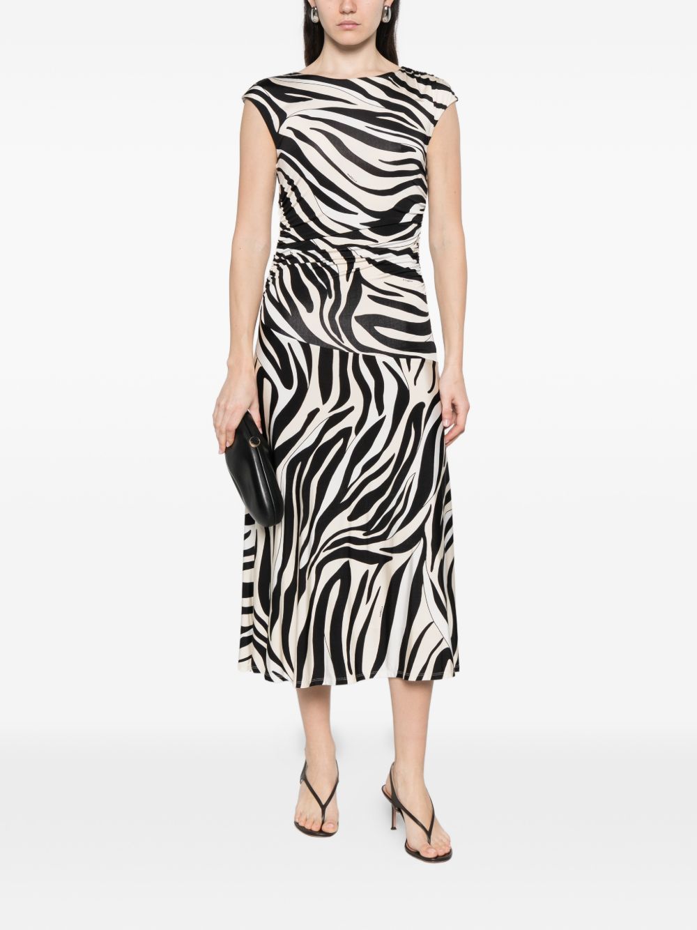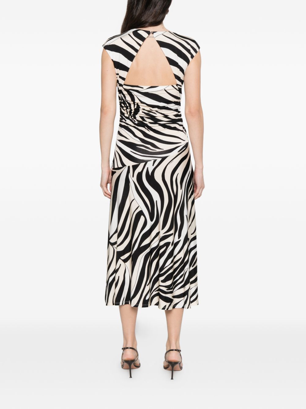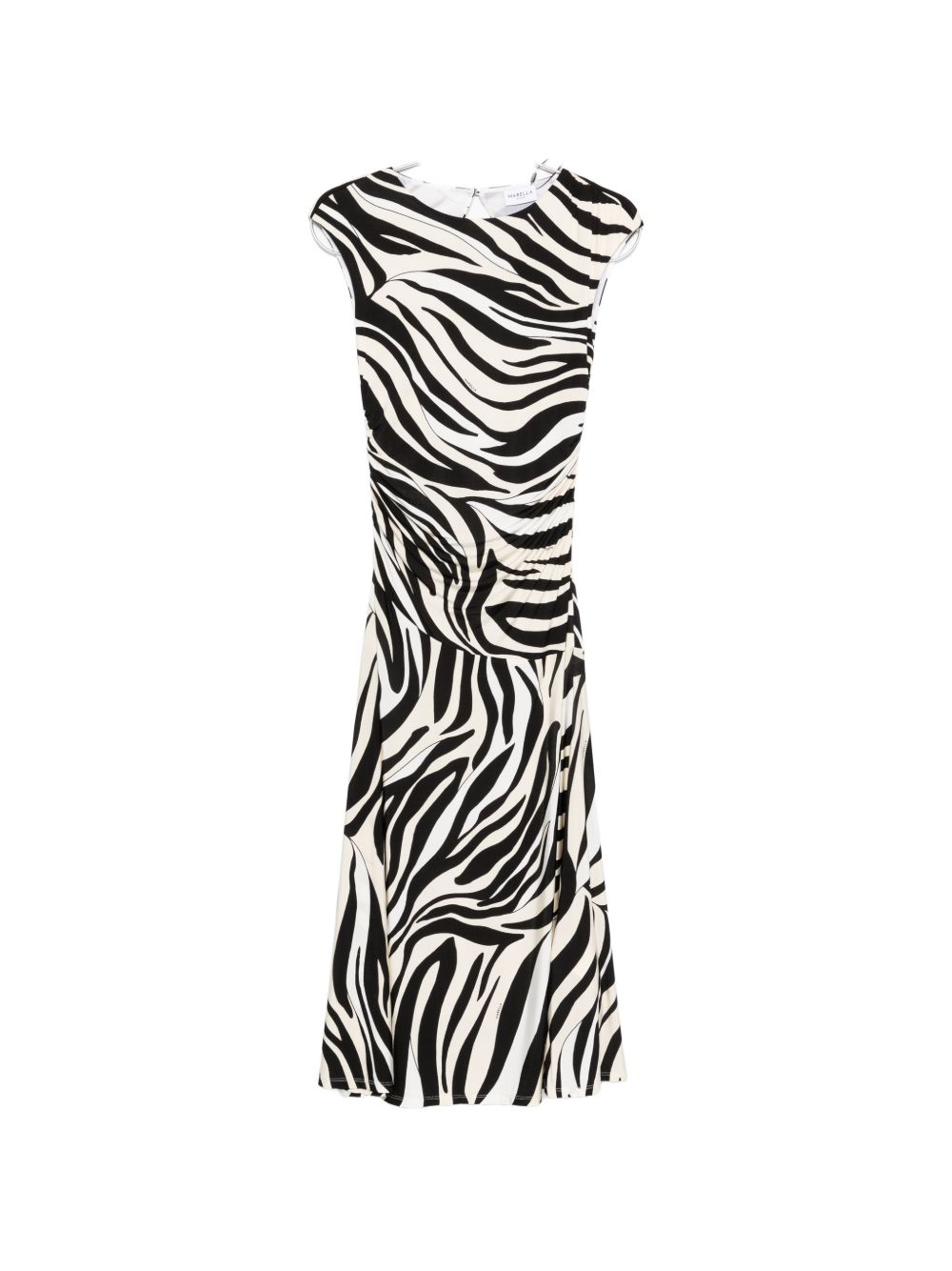 Abito lungo Marella Sport smanicato in popeline con fantasia zebra, caratterizzato da una linea fluida e leggera.