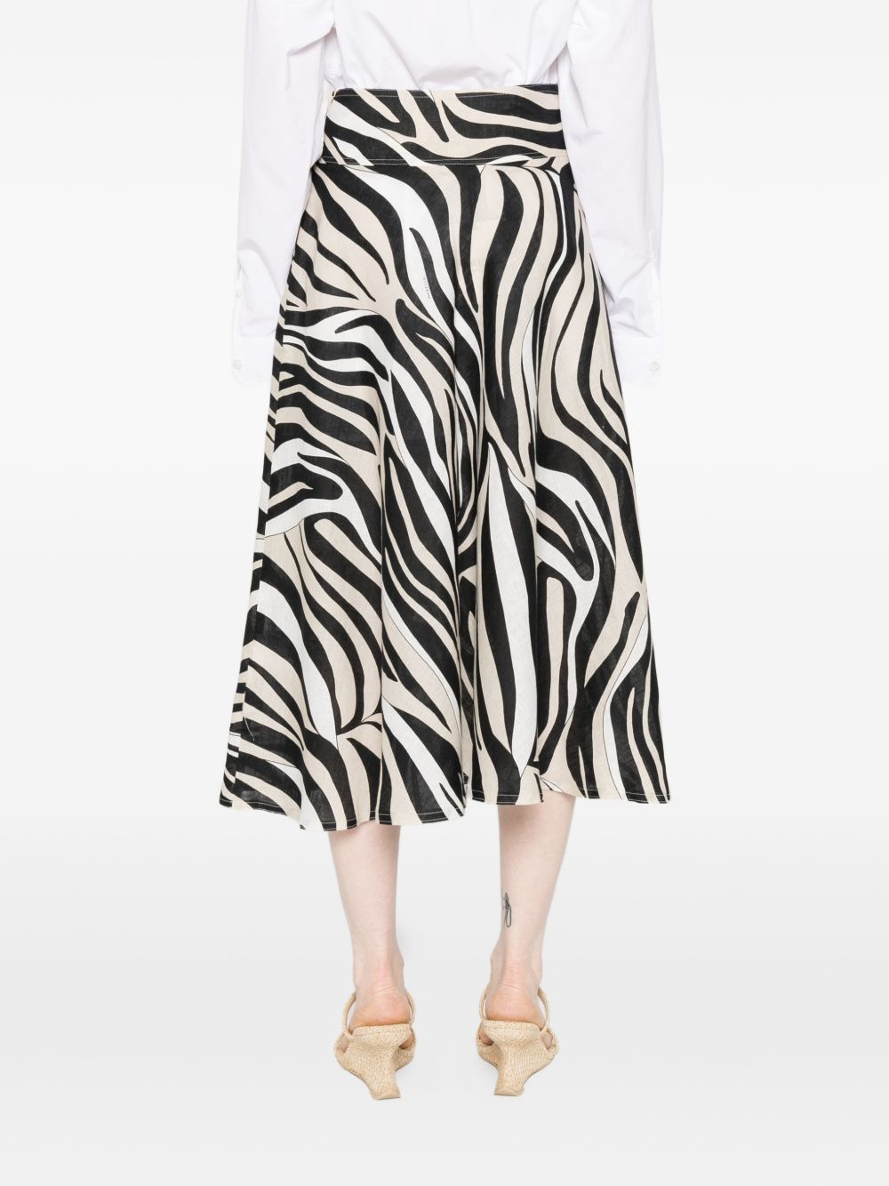 Gonna Marella Sport in lino con fantasia zebra, perfetto per un look estivo fresco e distintivo.