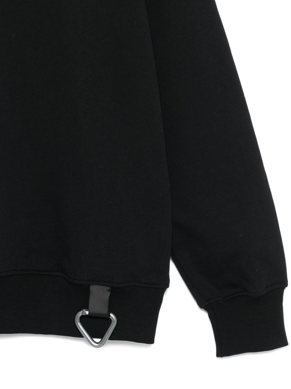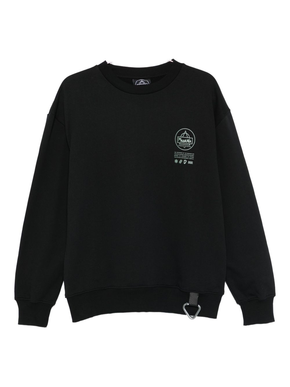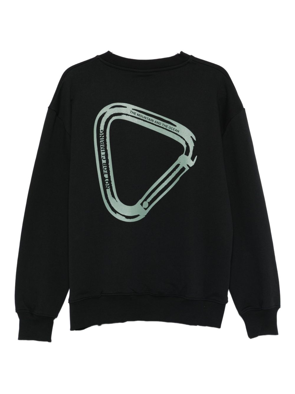 Realizzata in cotone, girocollo, stampa logo sul petto e stampa grafica dietro, applicazione moschettone sul fondo, polsini e fondo a costine, 100% cotone
