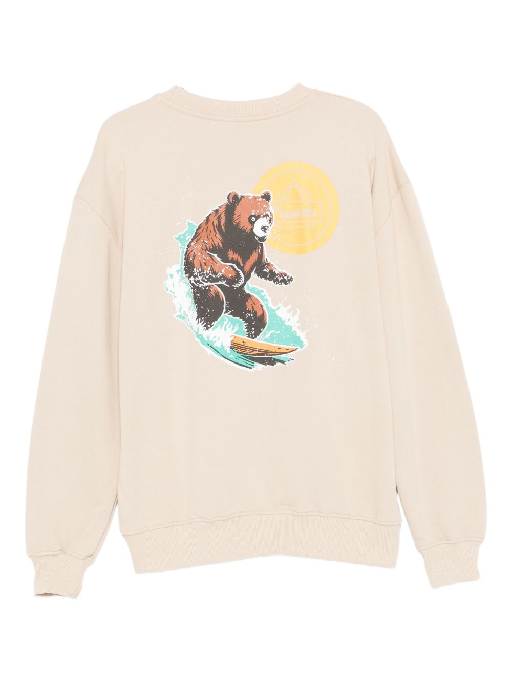 Realizzata in cotone, girocollo, stampa Surfing Bear dietro, applicazione logo sul petto, fondo e polsini a costine, 100% cotone