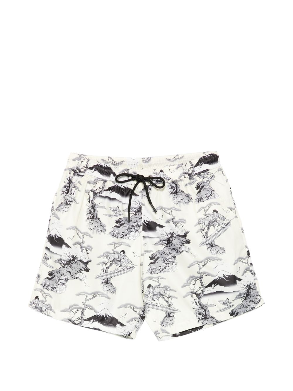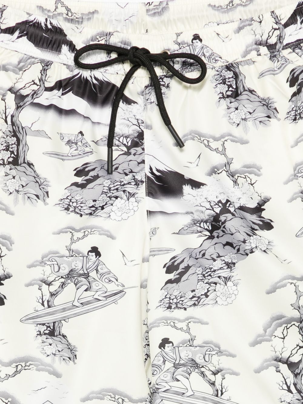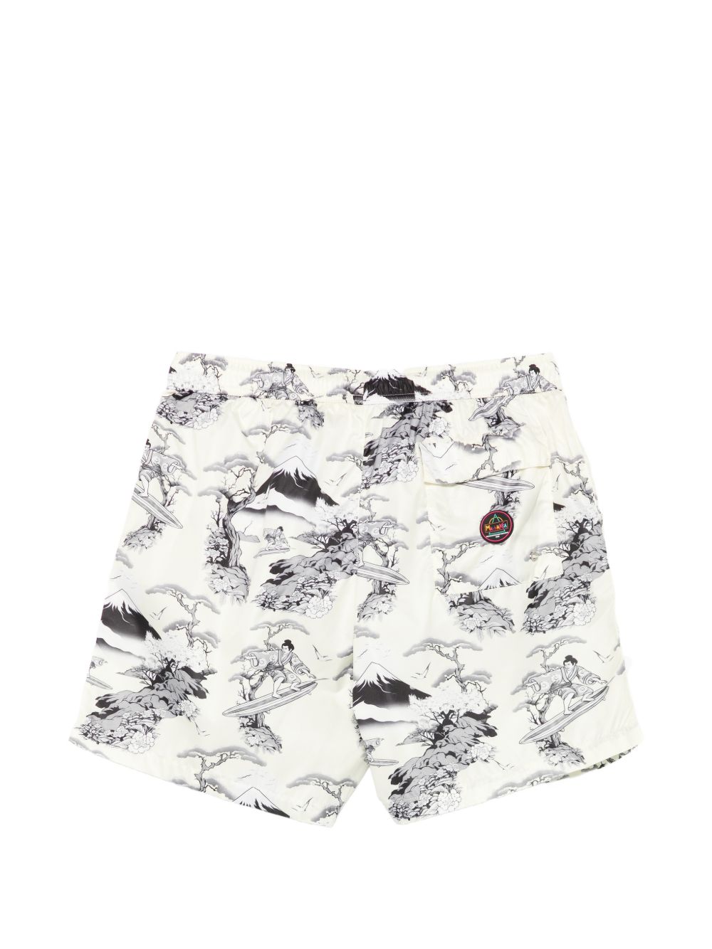 Realizzati in poliestere, vita elasticizzata regolabile con coulisse, fantasia all-over, 100% poliestere