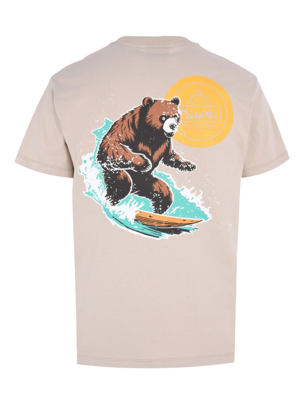 Realizzata in cotone, maniche corte, girocollo, stampa Surfing Bear dietro, applicazione logo sul petto, 100% cotone