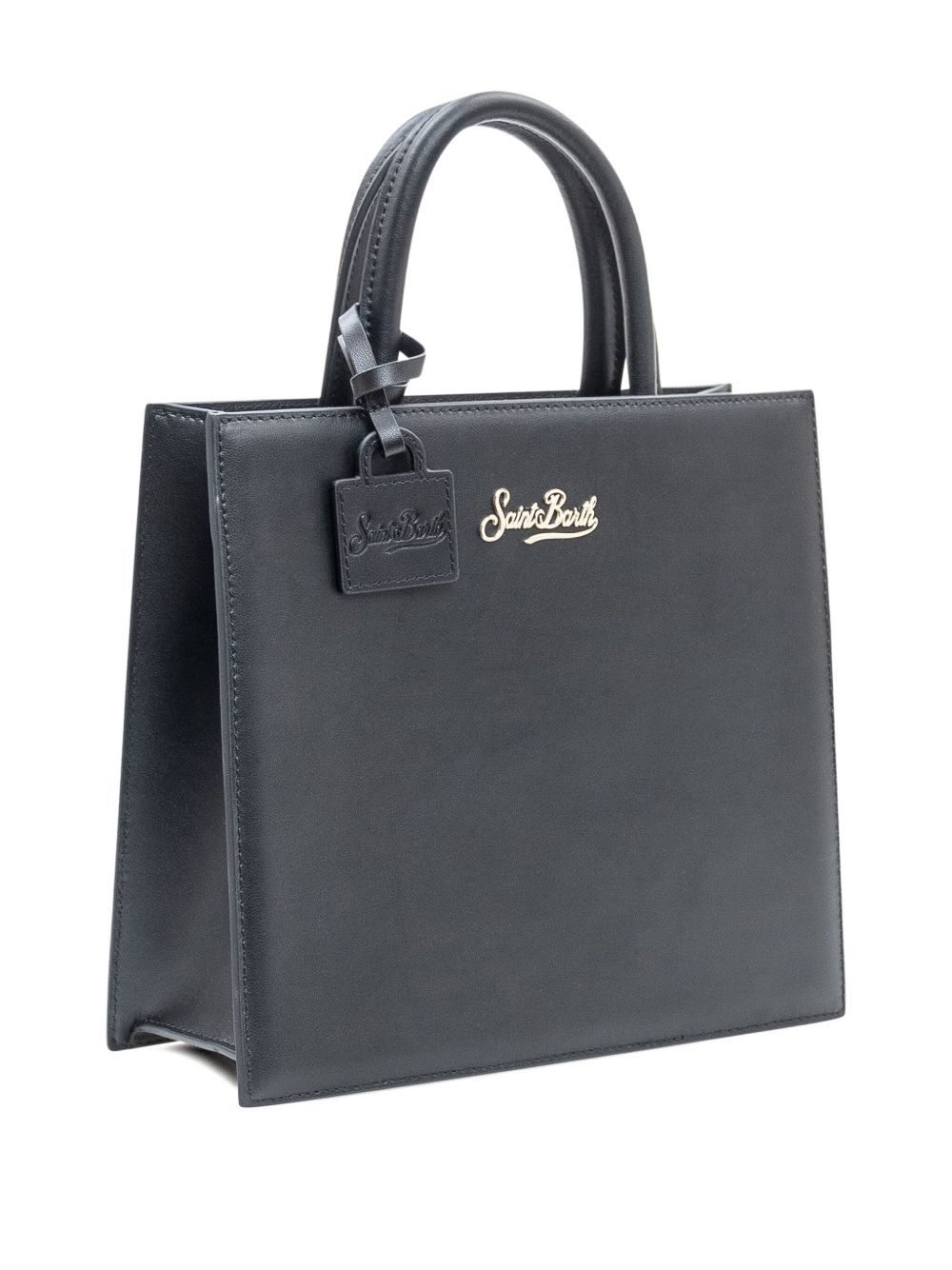 realizzata in pelle lisciata nera, logo placcato, doppio manico, tracolla regolabile e removibile, tasca interna, larghezza 22 cm, altezza 24,5 cm, profondità 9 cm