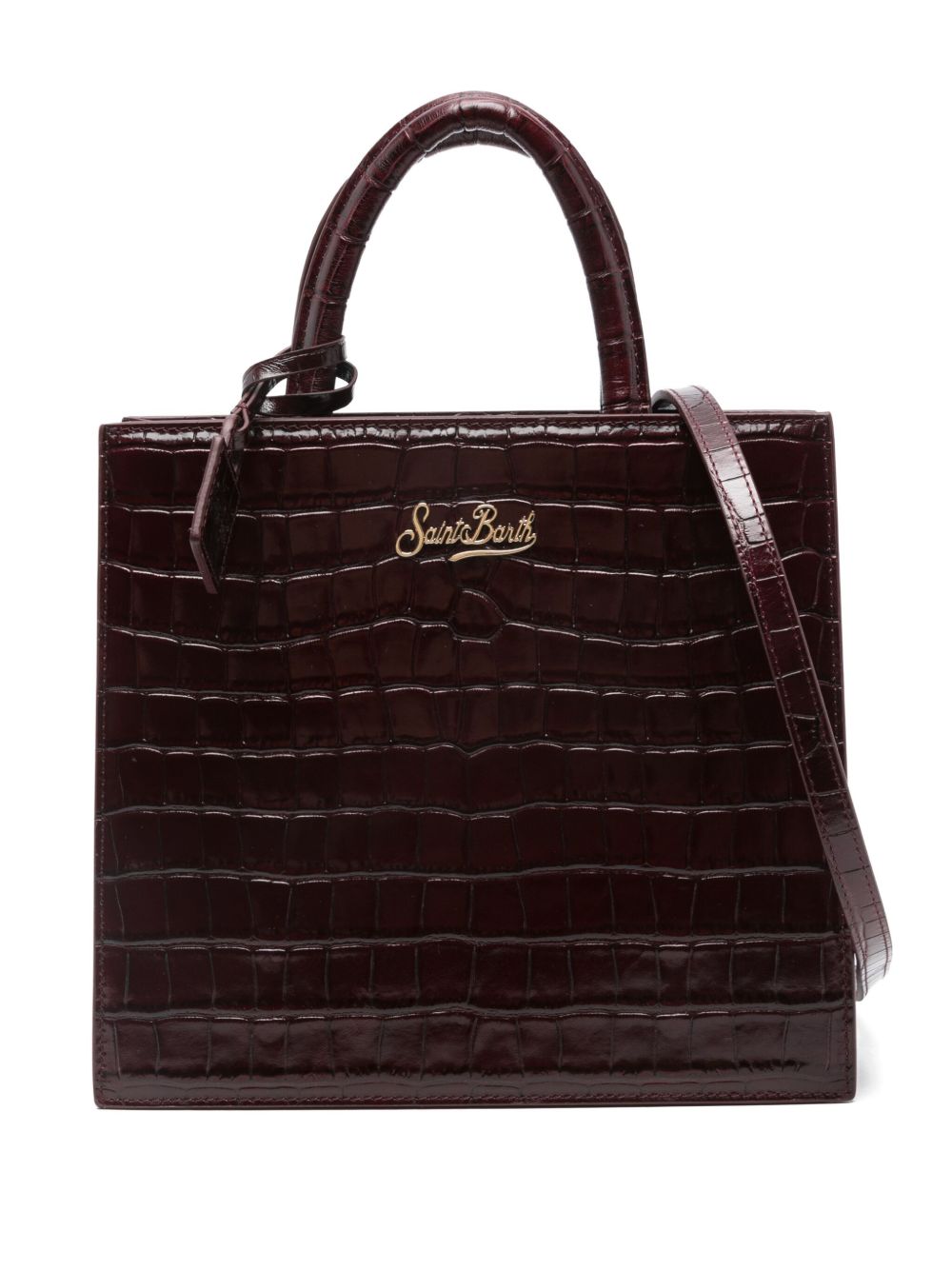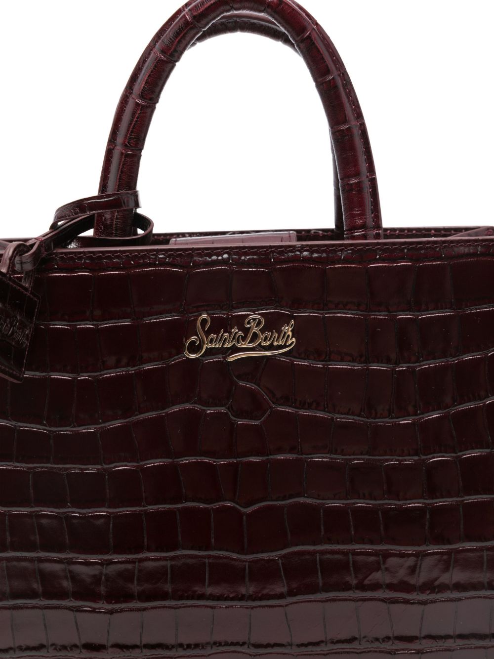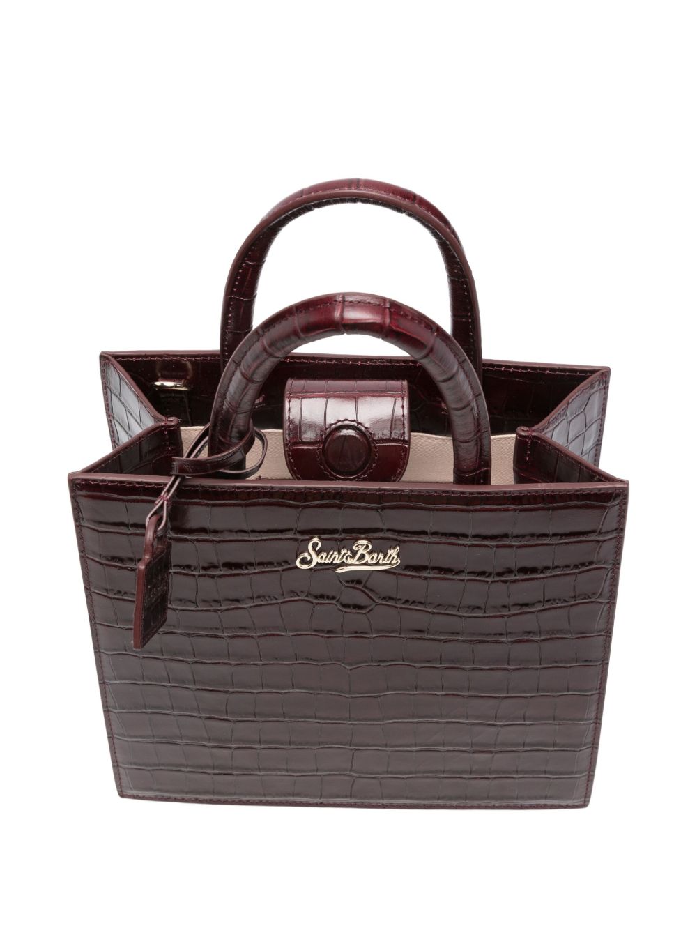 realizzata in pelle con stampa cocco bordeaux, logo placcato, doppio manico, tracolla regolabile e removibile, tasca interna, larghezza 22 cm, altezza 24,5 cm, profondità 9 cm