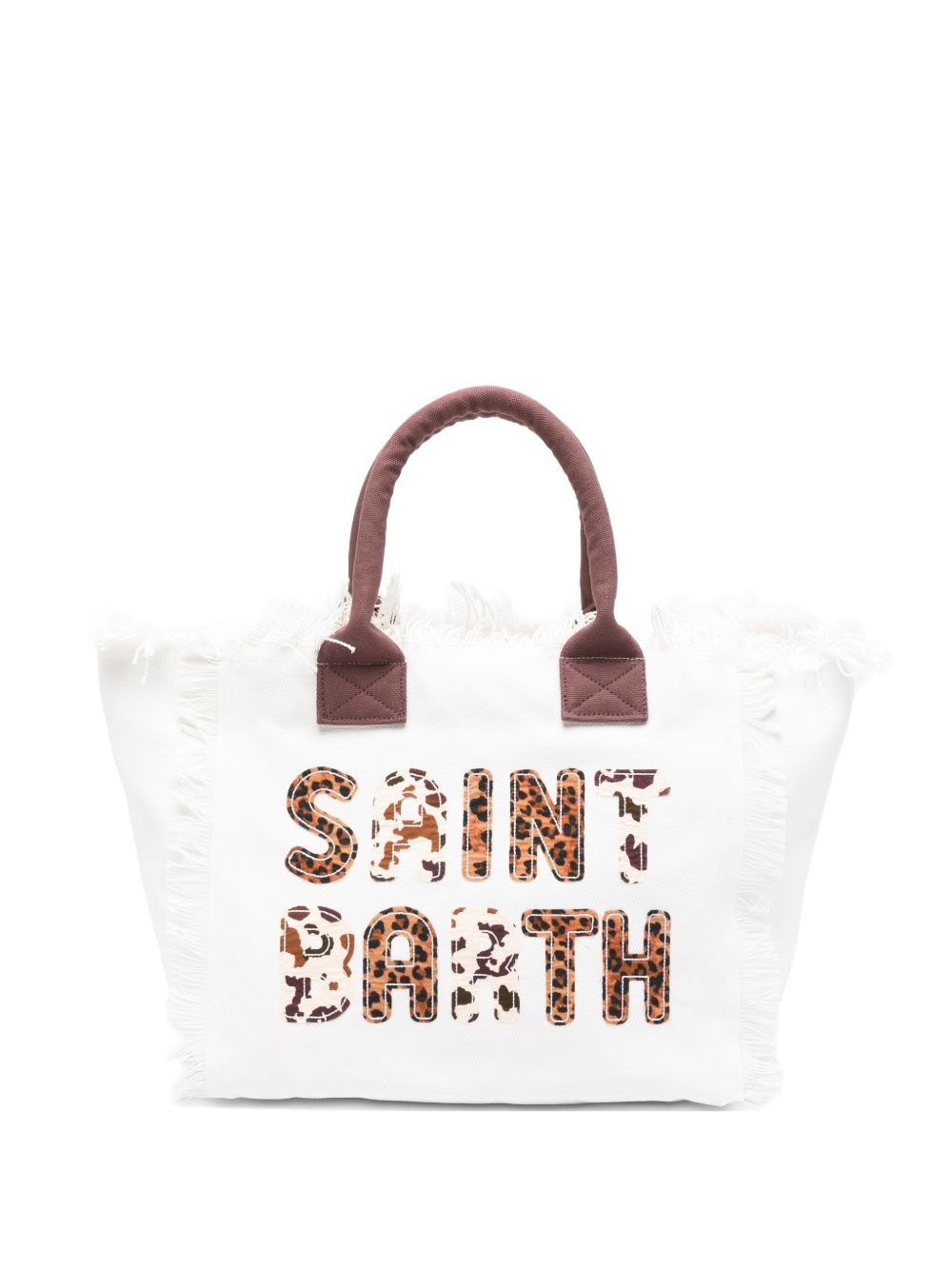 Realizzata in cotone, doppio manico superiore, stampa logo animalier davanti, chiusura superiore e tasca interna con zip, dettaglio frange, 40 x 32 x 20 cm, 100% cotone