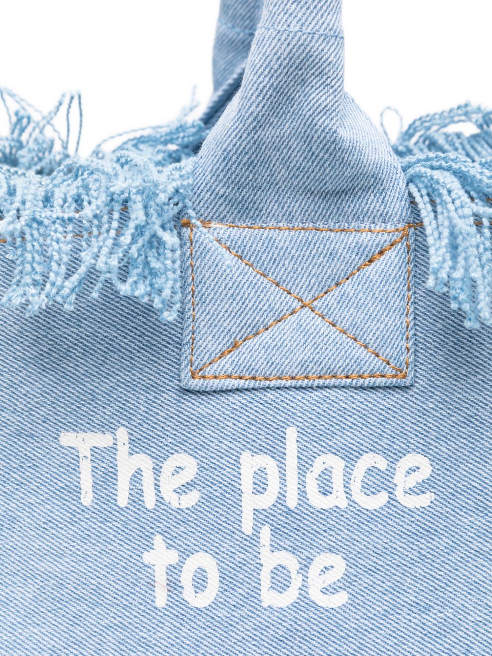 Realizzata in cotone, doppio manico superiore, stampa logo davanti, chiusura superiore e tasca interna con zip, dettaglio frange, 40 x 32 x 20 cm, 100% cotone