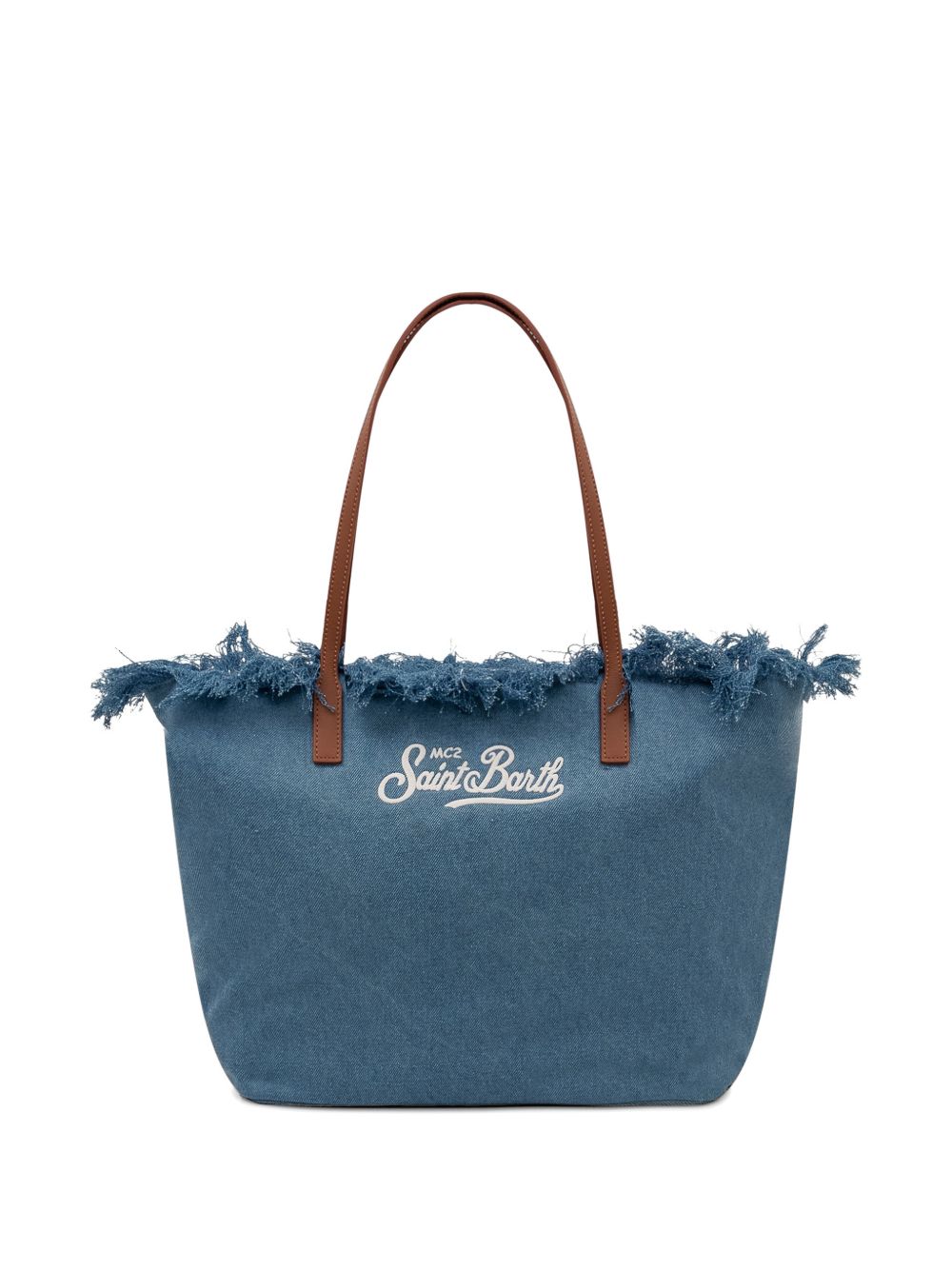 Realizzata in cotone, logo ricamato davanti, doppio manico, chiusura superiore e tasca interna con zip, dettaglio frange, larghezza 45 cm, altezza 30 cm, profondità 16 cm, manico 25 cm.