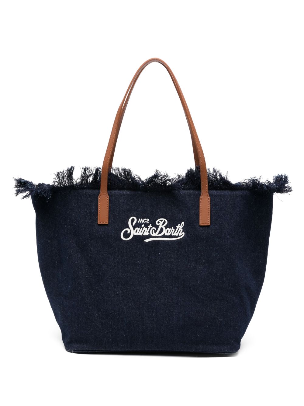 Realizzata in cotone, logo ricamato davanti, doppio manico, chiusura superiore e tasca interna con zip, dettaglio frange, larghezza 45 cm, altezza 30 cm, profondità 16 cm, manico 25 cm.