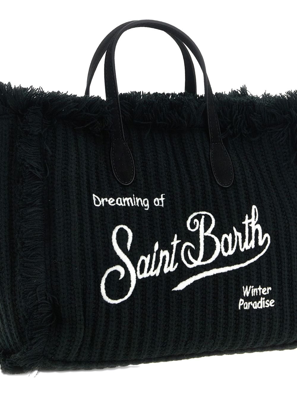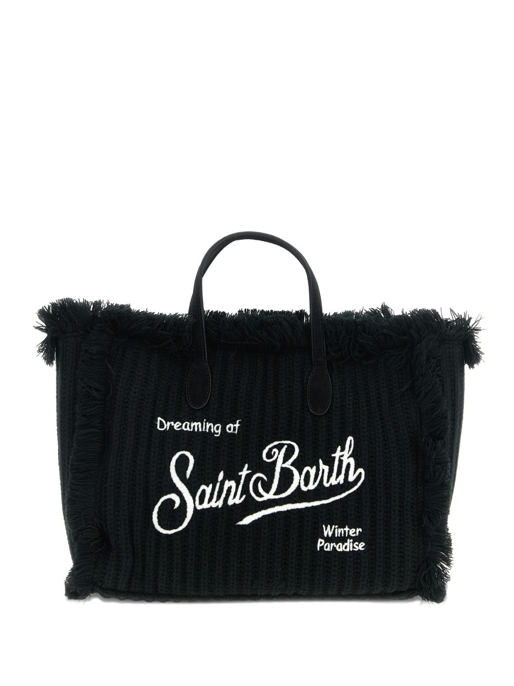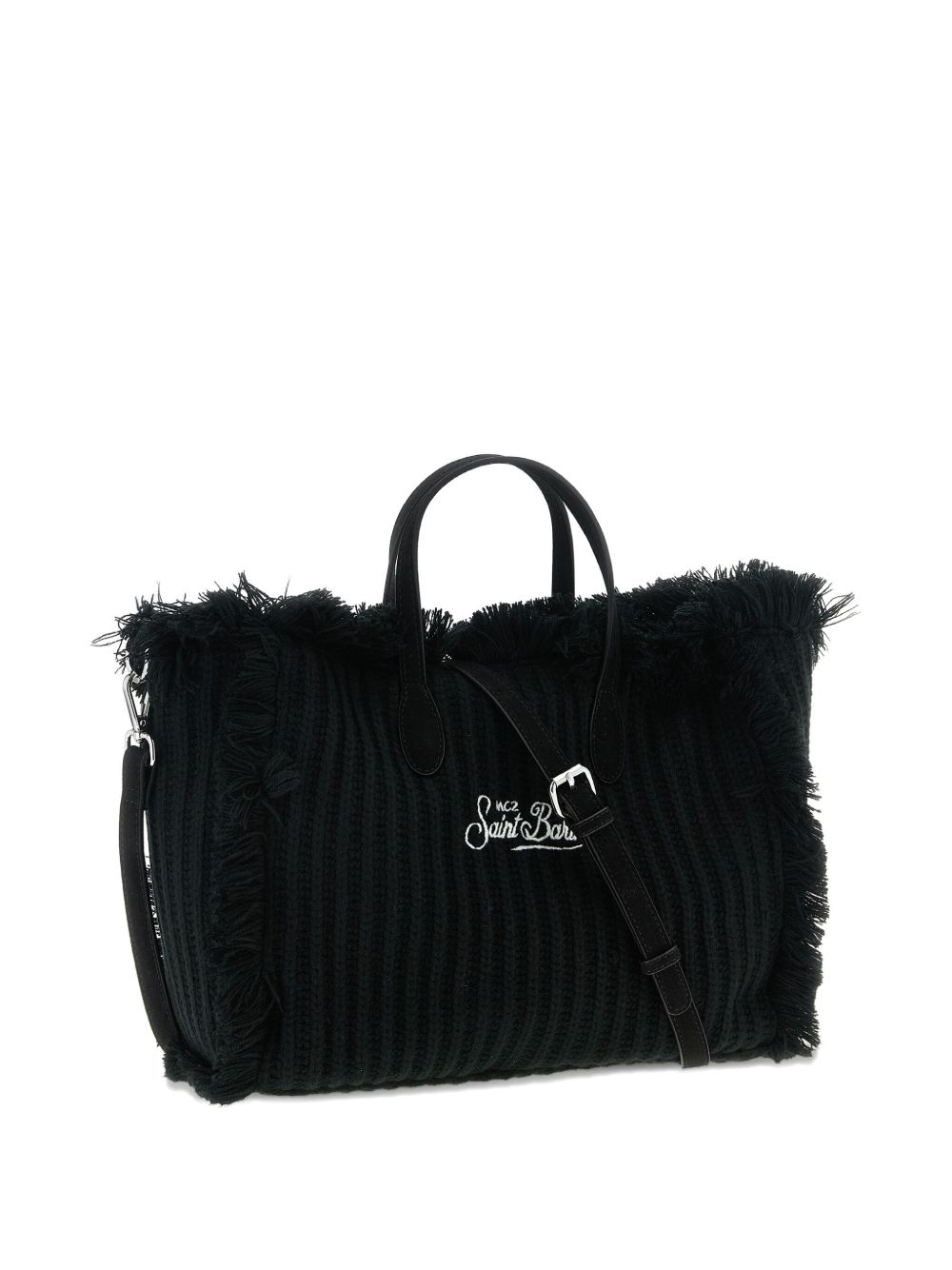 realizzata in tessuto effetto lana, dettaglio logo ricamato frontale, bordo con frange, scomparto unico, tasca a parete, chiusura superiore con zip, tracolla removibile, larghezza 35 cm, altezza 25 cm, profondità 10 cm, manico 10 cm, tracolla 45 cm, 100% acrilico 100% poliestere