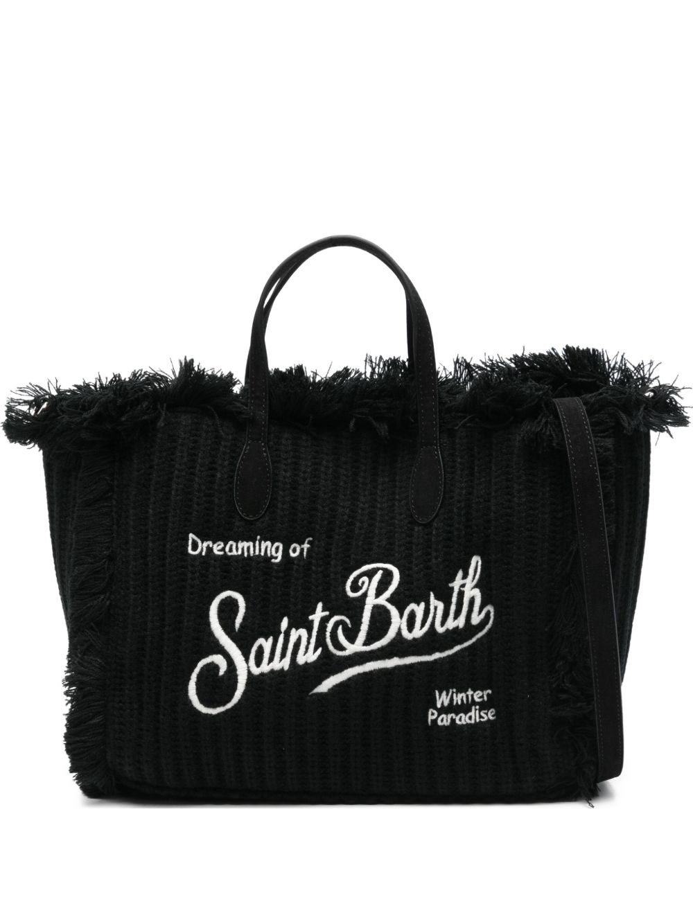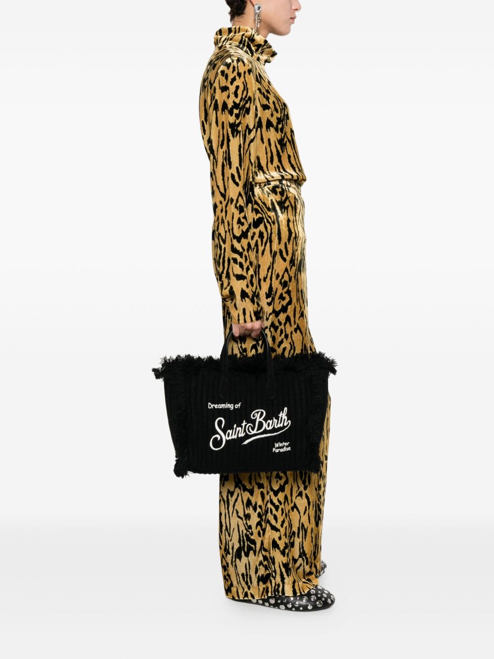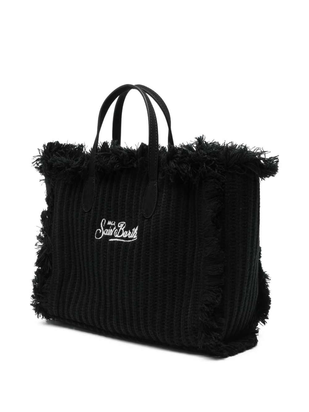 realizzata in tessuto effetto lana, dettaglio logo ricamato frontale, bordo con frange, scomparto unico, tasca a parete, chiusura superiore con zip, tracolla removibile, larghezza 35 cm, altezza 25 cm, profondità 10 cm, manico 10 cm, tracolla 45 cm, 100% acrilico 100% poliestere
