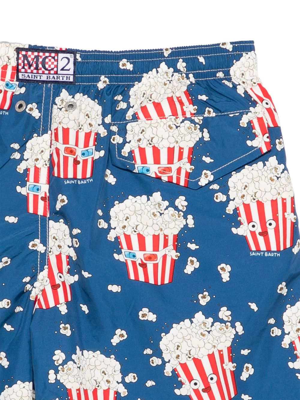 stampa con pop corn, vita elasticizzata con coulisse, tasca sul retro, asciugatura rapida, fodera interna in rete, 100% poliestere riciclato