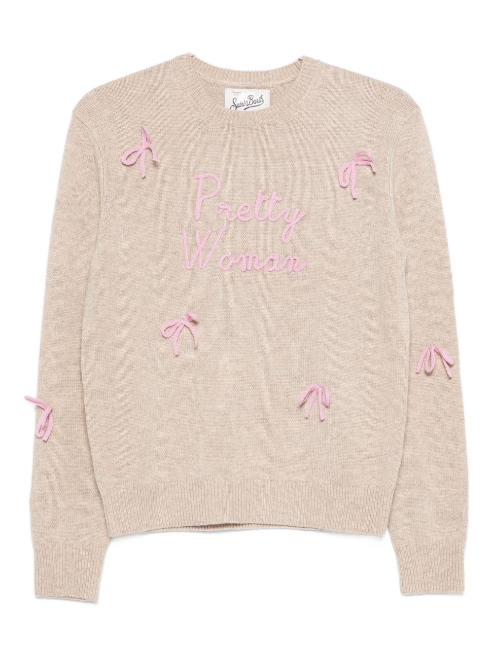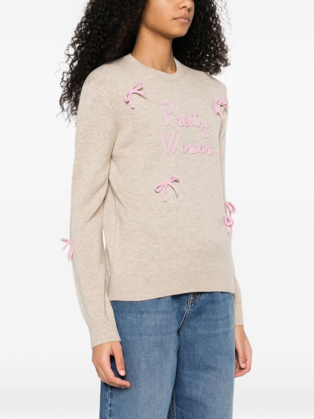 realizzata in misto lana, scritta in rilievo davanti, applicazione fiocchi, bordi e fondo a costine, vestibilità regolare, 35% lana, 30% viscosa, 20% cashmere, 15% nylon