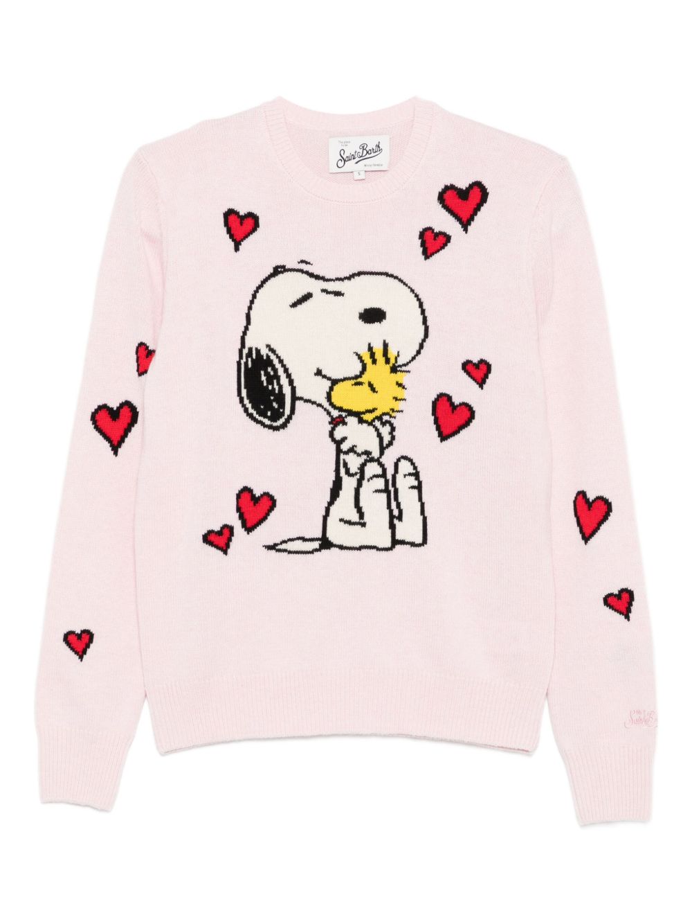 realizzato in misto lana, ricamo jacquard Snoopy e cuori, bordi a costine, vestibilità regolare, 40% lana, 10% cashmere, 25% viscosa, 25% poliammide