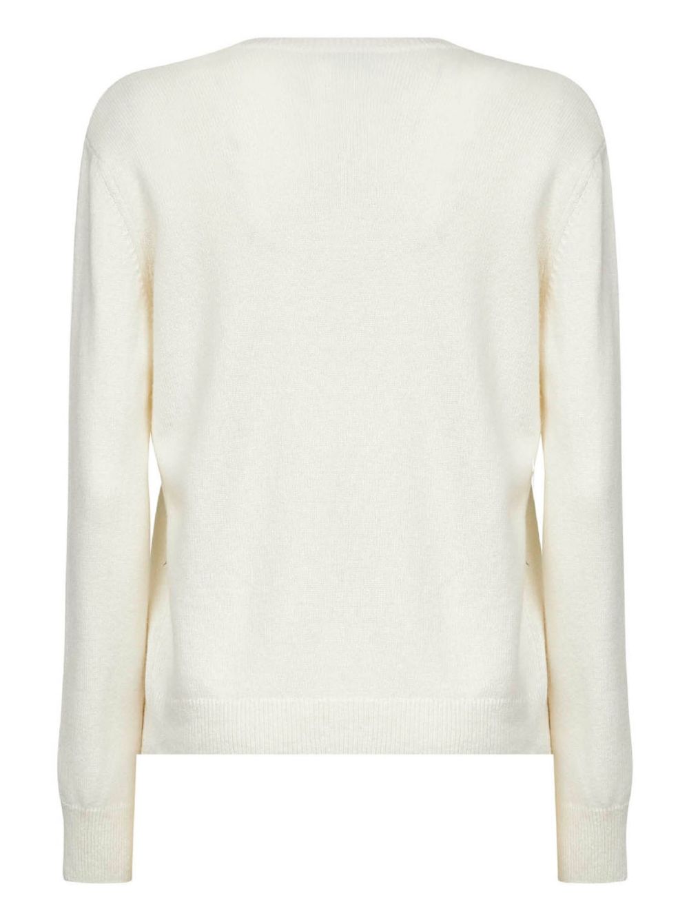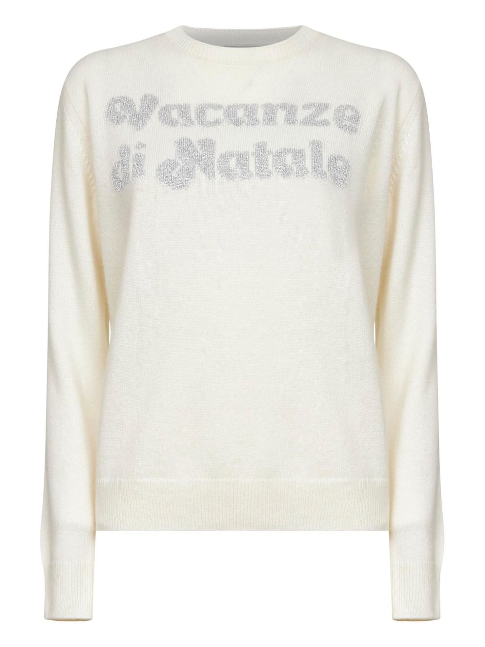 realizzato in misto lana, scritta jacquard in lurex, bordi a costine, 40% lana, 10% cashmere, 30% viscosa, 20% poliammide