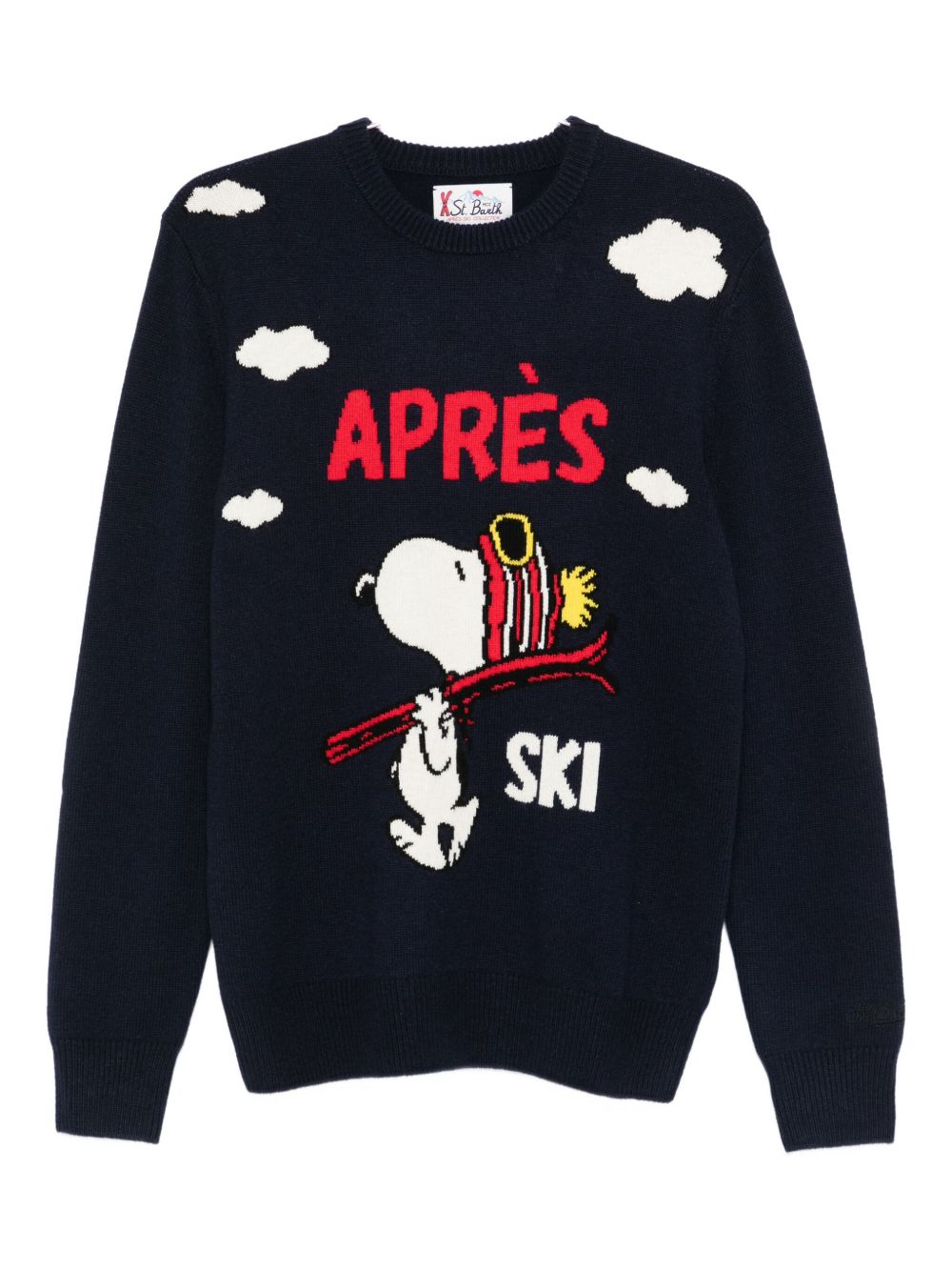 realizzato in misto lana, ricamo jacquard sul davanti Apres ski e Snoopy, bordi a costine, vestibilità regolare, 40% lana, 10% cashmere, 25% viscosa, 25% poliammide