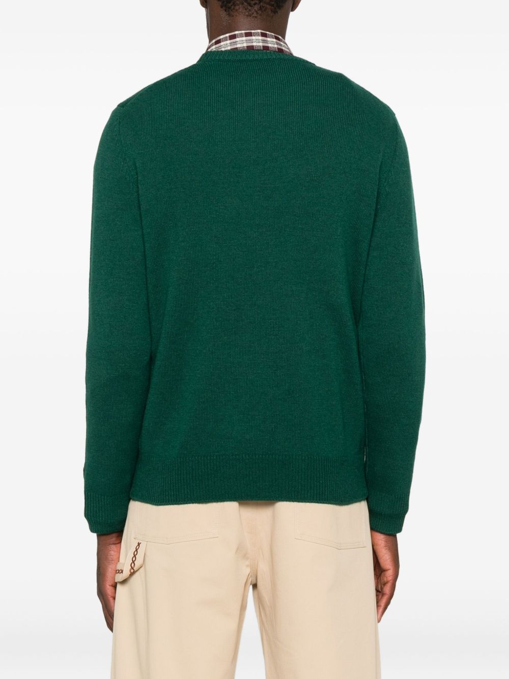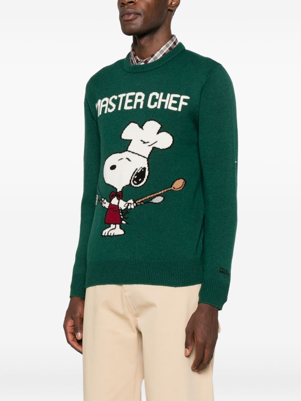 realizzata in misto lana, snoopy jacquard, bordi a costine, logo ricamato sulla manica, 40% lana, 10% cashmere, 25% viscosa, 25% poliammide
