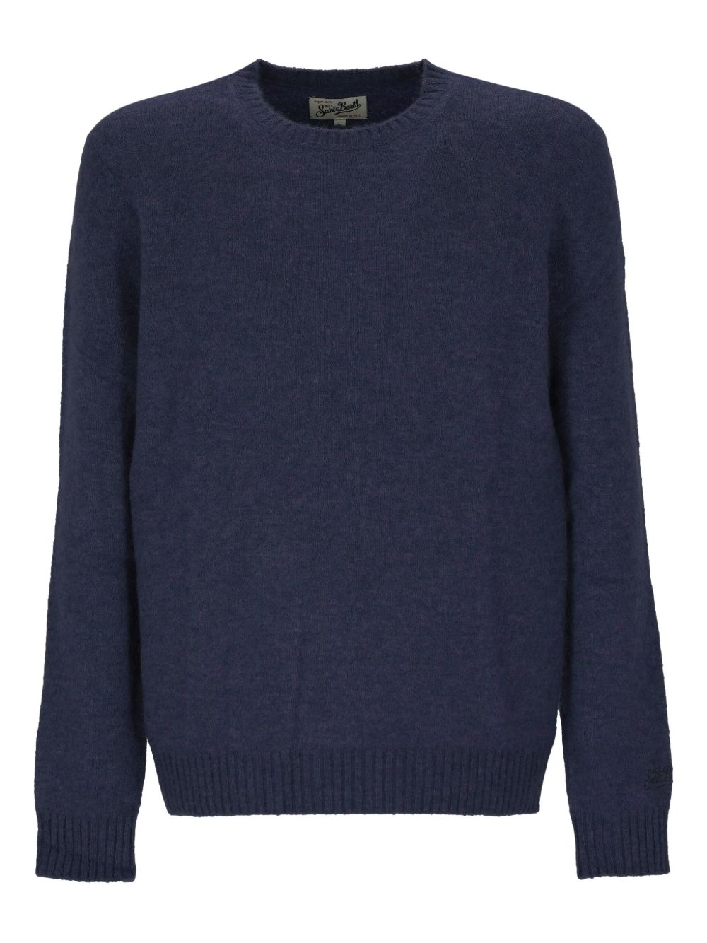 realizzata in alpaca elasticizzata, tinta unita blu, bordi a costine, vestibilità regolare, 73% alpaca, 25% poliammide 2% elastan