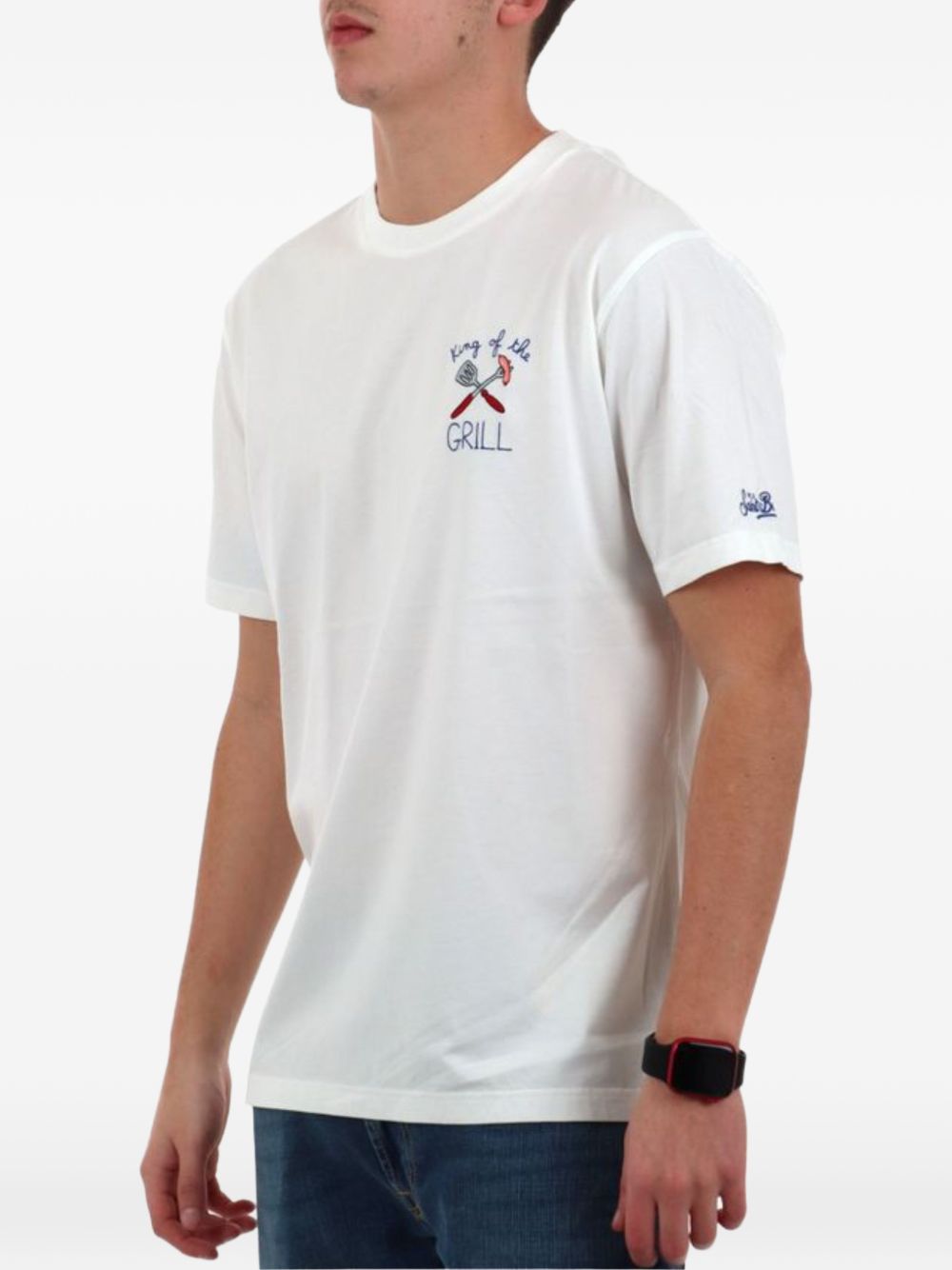 Realizzata in cotone, girocollo, manica corta, grafica ricamata sul petto, ricamo logo sulla manica, 100% cotone