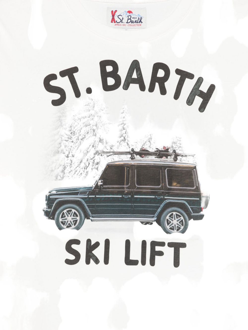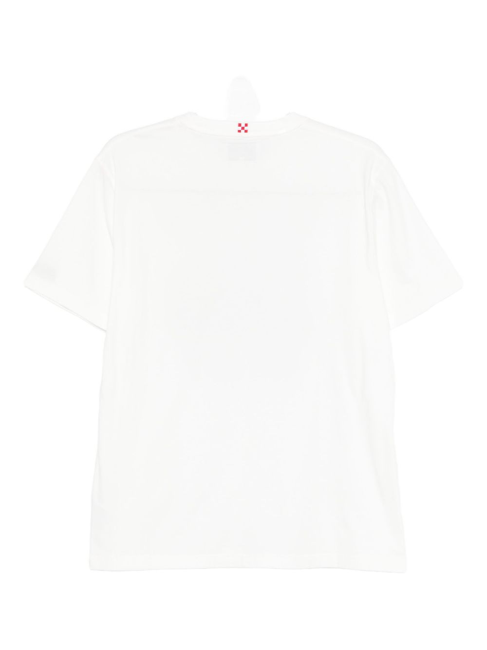 realizzata in cotone, stampa con logo sul davanti, scollo rotondo, maniche corte, logo ricamato sulla manica, orlo dritto