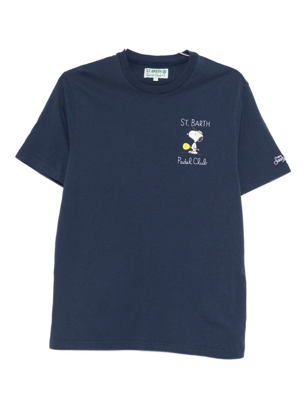 realizzata in cotone, stampa con logo sul petto, scollo rotondo, maniche corte, logo ricamato sulla manica, orlo dritto