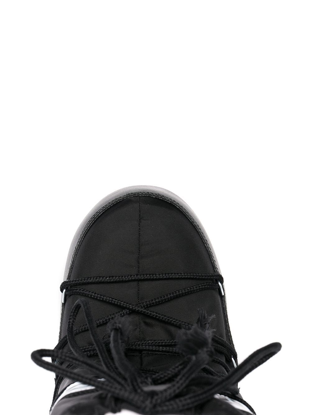 Dettagli di design: logo Moon Boot, lacci tubolari criss-cross e inserti in PVC per un look unico.