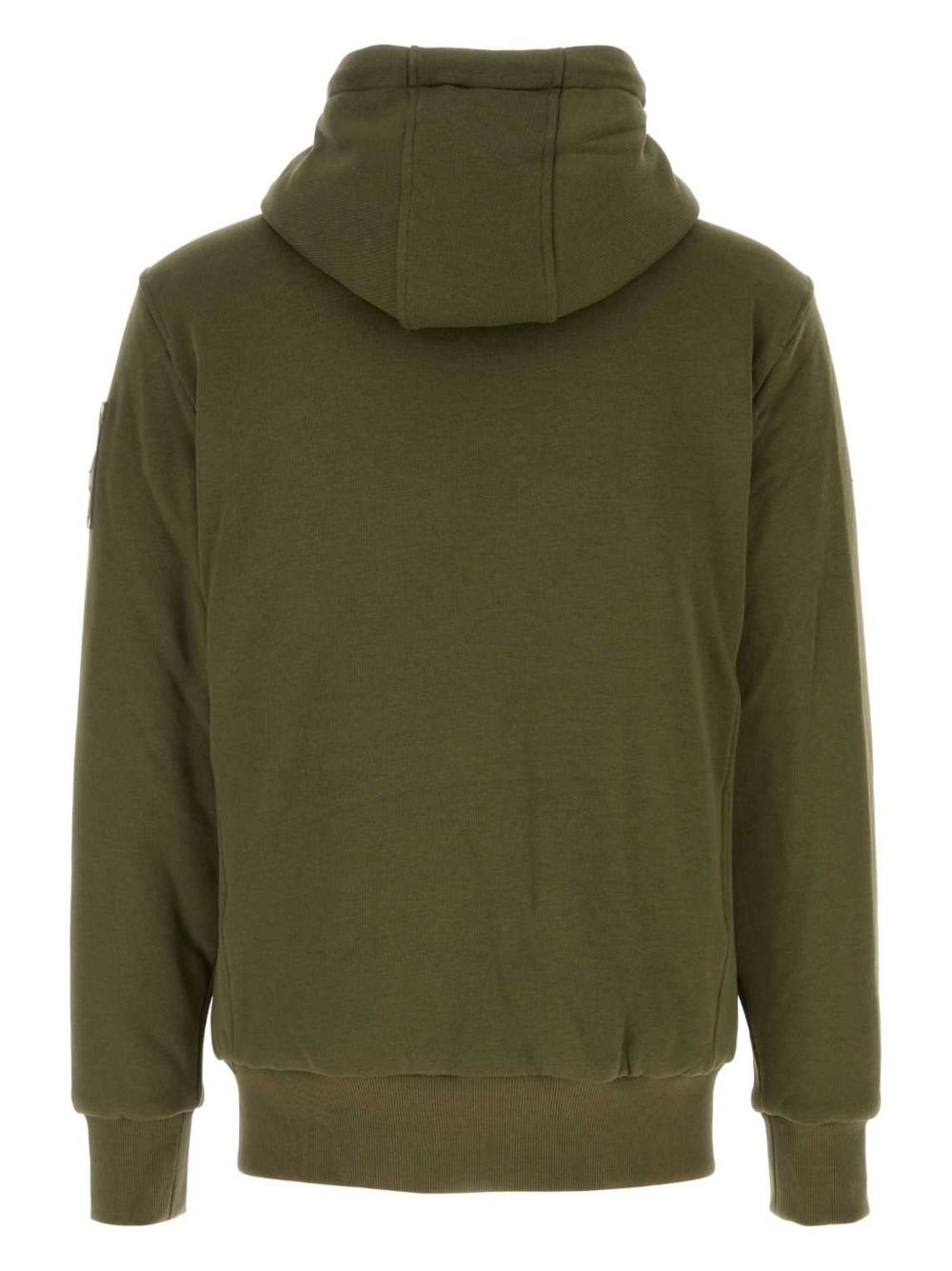 Realizzata in misto cotone, logo applicato sulla manica, cappuccio con coulisse, rifinitura in ecopelliccia, orlo e polsini a coste, tasca a marsupio, 75% cotone, 25% poliestere