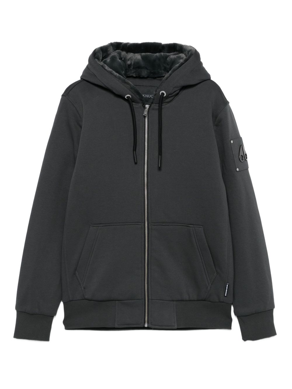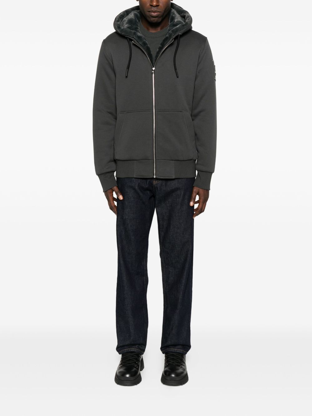 Realizzata in misto cotone, logo applicato sulla manica, cappuccio con coulisse, rifinitura in ecopelliccia, orlo e polsini a coste, tasca a marsupio, 75% cotone, 25% poliestere